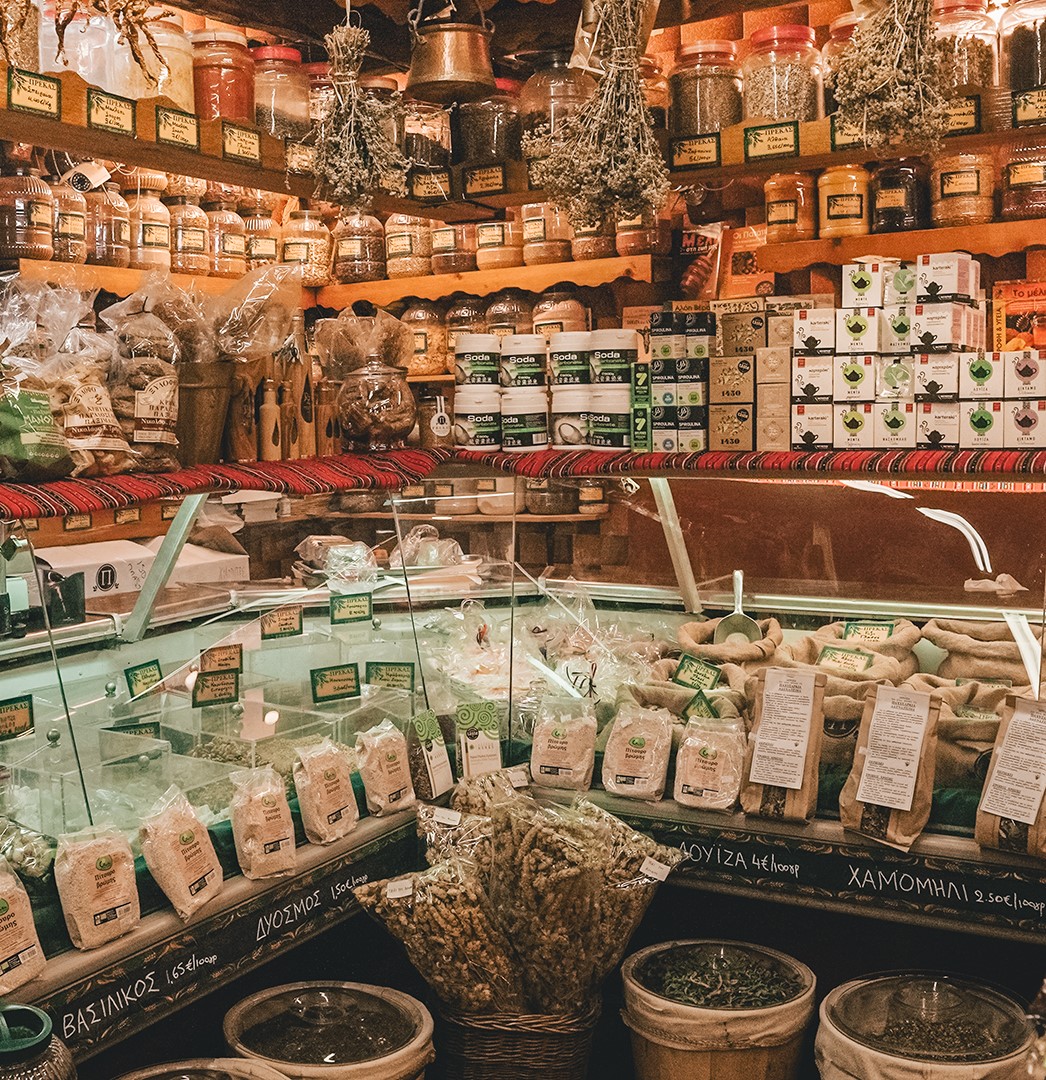Όλο το κέντρο της Ερμούπολης είναι έναν πυκνό πλέγμα από παλιά και σύγχρονα μαγαζιά, ακριβές ή πιο οικονομικές μπουτίκ, art shops, καταστήματα με κεραμικά, αξεσουάρ και χειροποίητα κοσμήματα, καλόγουστα μικρά καφέ-μπαρ, all day restaurants, ελληνικές ταβέρνες, γκαλερί, ζαχαροπλαστεία, μαγαζιά με τοπικά προϊόντα και βιολογικά κ.ά. Είναι απόλαυση να περπατάς στους πεζόδρομους και να τα ανακαλύπτεις το ένα δίπλα στο άλλο -το χθες και το σήμερα σε λίγα τετραγωνικά. Στον πεζόδρομο της Χίου βρίσκεται η παραδοσιακή αγορά τροφίμων με μανάβικα, ψαράδικα κ.ά. Διάσημο είναι το μεγάλο κατάστημα Πρέκα, μια αληθινή κιβωτός προϊόντων και βοτάνων από τη Σύρο και όλη την Ελλάδα. Πολύ γνωστό είναι το «Οινοπνευματοπωλείον» του Κριτσίνη, η μεγάλη κάβα που λειτουργεί από το 1917. Διατηρεί ακόμη τα μπουκάλια από το μπράντι, τα λικέρ, τα ούζο, τη μαστίχα που έφτιαχνε ο παππούς. Αξίζει να μπείτε και στο φαρμακείο του Κωβαίου, του 1837, που είναι, όπως λέει ο ιδιοκτήτης του, το «παλαιότερο της νεότερης Ελλάδας».