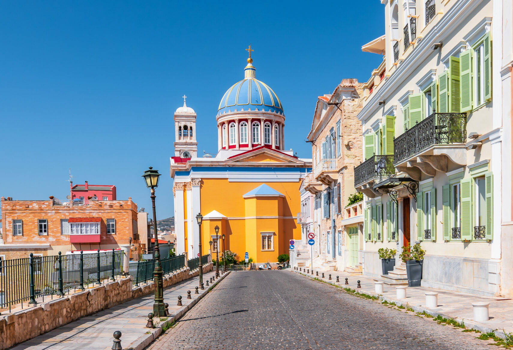 Η Σύρος ξεχωρίζει στις Κυκλάδες με την καταπληκτική αρχιτεκτονική της, την αρχοντιά της και τις υπέροχες παραλίες της. Κάντε μία βόλτα στα σοκάκια της, ανάμεσα στα νεοκλασικά κτήριά της και ανακαλύψτε την κομψότητά της.