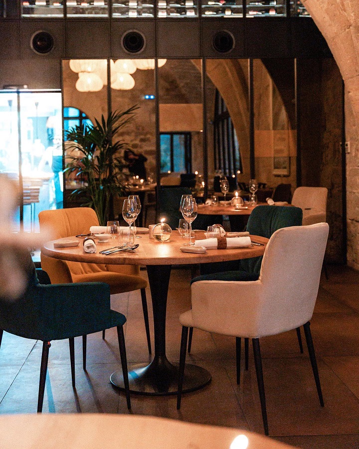 Η βαριά, πολυτελής επίπλωση και η πραγματικά ρομαντική ατμόσφαιρα που ενισχύεται κάτω από το φως των κεριών θα αποτελέσουν το τέλειο σκηνικό για να δοκιμάσετε τα δημιουργικά μενού που συνδυάζουν τα καλύτερα εποχικά προϊόντα των ντόπιων καλλιεργητών και κτηνοτρόφων με τις πιο σύγχρονες και ενδιαφέρουσες τεχνικές της μοντέρνας γαστρονομίας. Μία εξαιρετική εμπειρία υψηλής γαλλικής κουζίνας.
