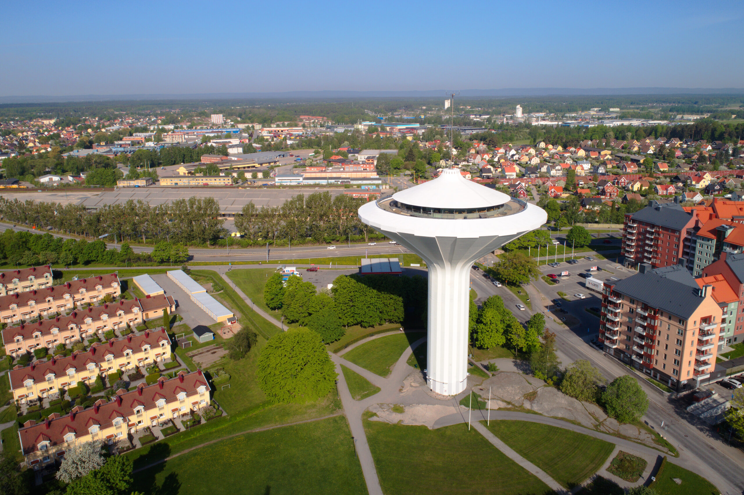Μισή ώρα περπάτημα προς τα βόρεια, θα σας φέρει στην περιοχή Norr και σε ένα ακόμη αρχιτεκτονικό ορόσημο της πόλης, πολύ πιο μοντέρνο αυτή τη φορά. Ο ύψους 58 μέτρων υδάτινος πύργος Svampen έχει ακριβώς το σχήμα του μανιταριού που σημαίνει το όνομά του και από το 1957 ορθώνεται πάνω από μια γραφική γειτονιά κόκκινων και κίτρινων σπιτιών, επιβλέποντας ολόκληρη την πόλη. Το πρωτοποριακό, φουτουριστικό του σχέδιο είχε προκαλέσει τεράστια αίσθηση πολύ πέρα από τη Σουηδία, μάλιστα ένα ακριβές, ελαφρώς μεγαλύτερο αντίγραφό του βρίσκεται στο Ριάντ της Σαουδικής Αραβίας. Δύο ανελκυστήρες θα σας μεταφέρουν ως το παρατηρητήριο με την υπέροχη πανοραμική θέα που απλώνεται στα γύρω εξοχικά τοπία, ενώ δίνονται πληροφορίες για τα σημαντικά κτήρια και τις περιοχές που θα βλέπετε γύρω σας. Στο Skybar Svampen που λειτουργεί στο επίπεδο του παρατηρητηρίου, θα ζεσταθείτε με ροφήματα και με υπέροχη σούπα -φυσικά από μανιτάρια.