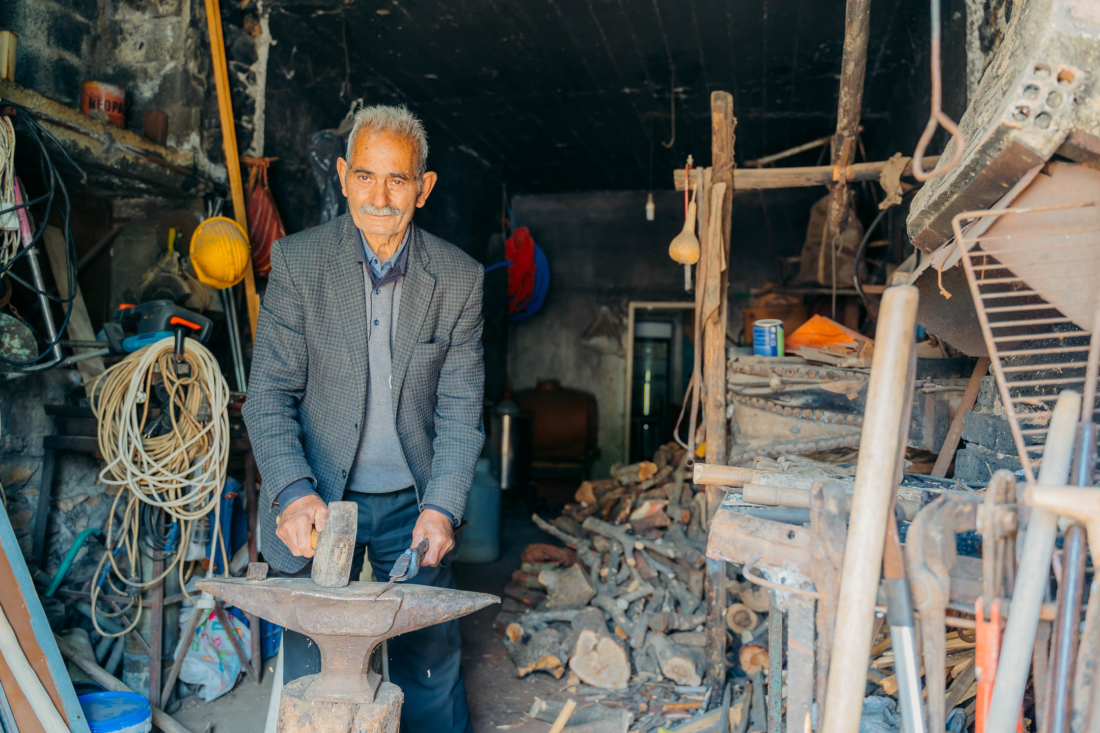 Με την πολύτιμη βοήθεια του Νικηφόρου, ενός αεικίνητου και ταυτόχρονα εμπνευσμένου ανθρώπου που ζει και δραστηριοποιείται στο Οροπέδιο, επισκεπτόμαστε το χαρκαδιό, το χώρο δηλαδή που ο κ. Μανώλης Σπανάκης έχει ως εργαστήριο για την κατασκευή εργαλείων. Ο κ. Μανώλης από το 1961, οπότε και ασχολείται με αυτή τη δουλειά, έχει κατασκευάσει αλλά και επισκευάσει, χιλιάδες ανεμόμυλους, ενώ παράλληλα φτιάχνει και εργαλεία. Μας διηγείται ιστορίες από τότε που οι ανεμόμυλοι αποτελούσαν την κινητήριο δύναμη για ολόκληρη την πεδιάδα, ενώ, ακόμη και σήμερα, δεν σταματά λεπτό. Φτάσαμε στο εργαστήριο του, στο χαρκαδιό, έχοντας πρώτα μιλήσει μαζί του στο τηλέφωνο.