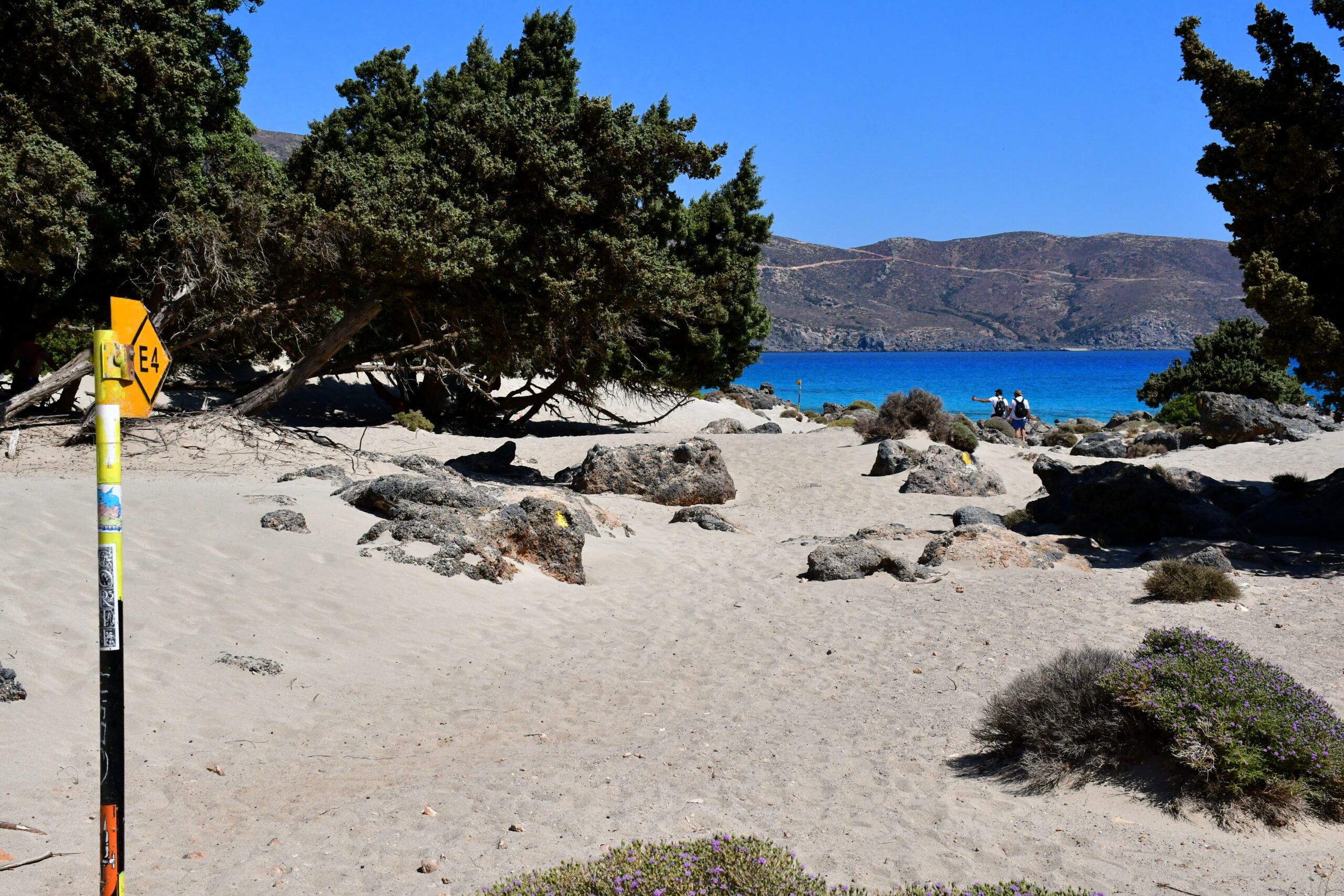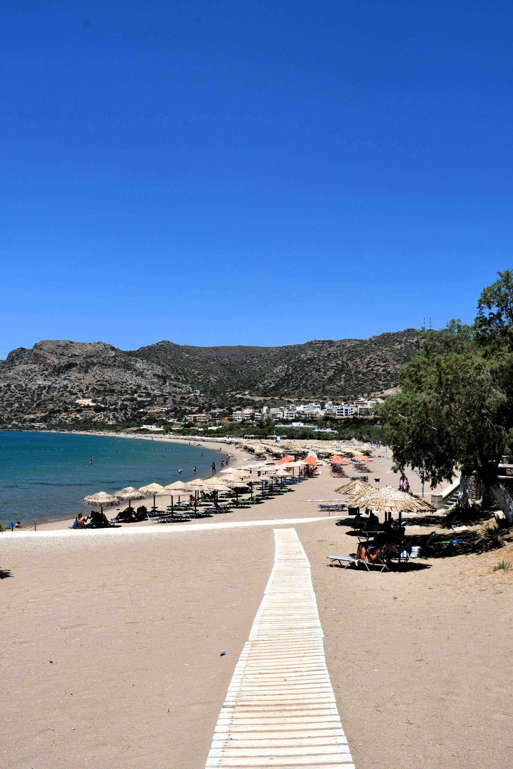 Οι δημοφιλείς παραλίες Παχιά Άμμος δυτικά (με άμμο) και Χαλίκια (με βότσαλα) δυτικά, είναι σχεδόν άδειες αυτή την εποχή, επιτρέποντάς στον επισκέπτη όχι μόνο να απολαύσει τη γαλήνια θάλασσα και την ηρεμία της φύσης, αλλά να βουτήξει ακόμη και για ένα δροσερό μπάνιο. Τα νερά του Λιβυκού παραμένουν ζεστά μέχρι αργά το φθινόπωρο, καθιστώντας το μπάνιο μια μοναδική εμπειρία. Σε κοντινή απόσταση υπάρχουν και άλλες παραλίες, όπως στη θέση Γιαλισκάρι και η παραλία Κριός στα δυτικά.