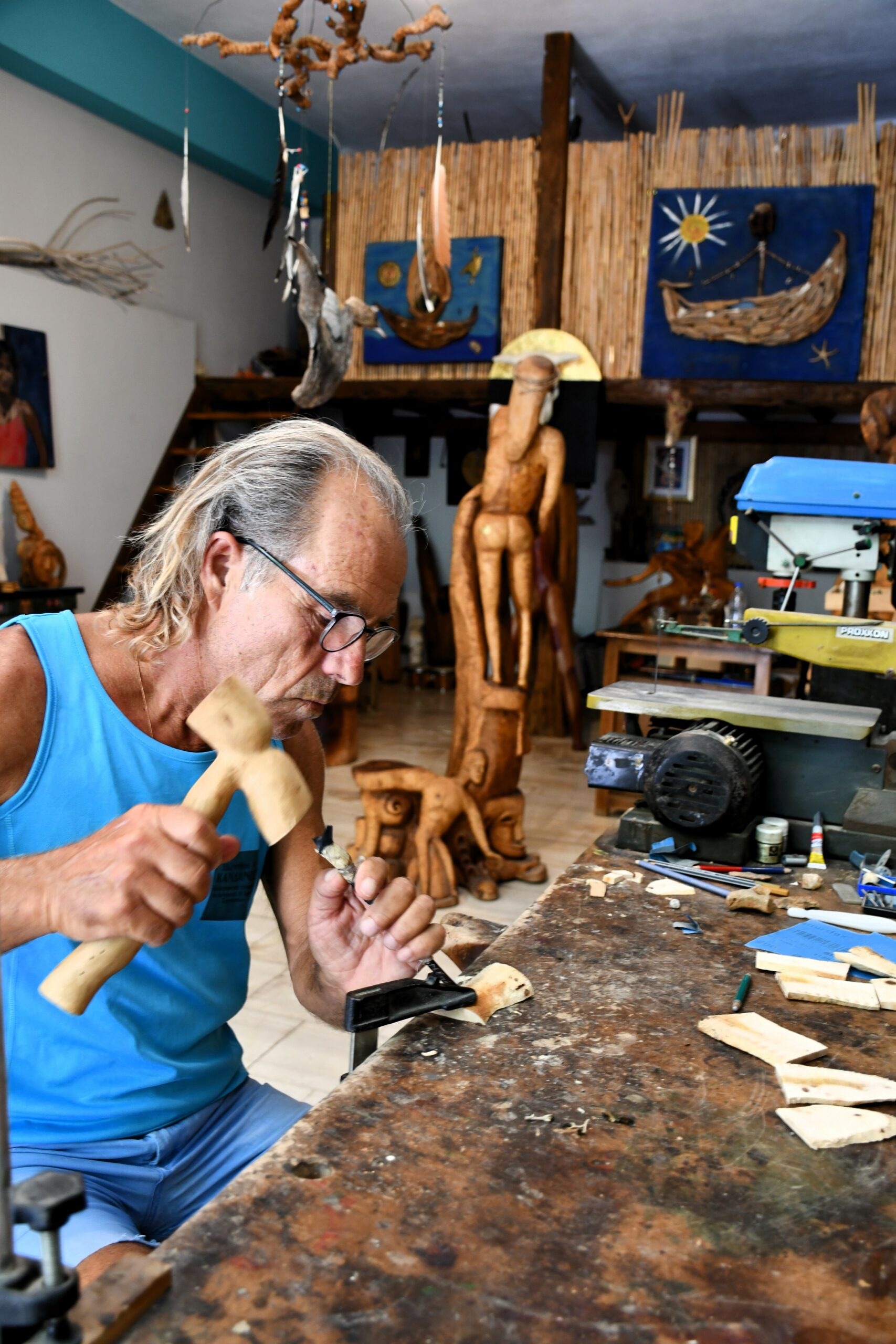 Ανάμεσα στους ανθρώπους που αξίζει να γνωρίσει ο επισκέπτης στην Παλαιοχώρα, είναι ο ντόπιος γλύπτης Κώστας Λιατάκης. Στο εργαστήρι του αναδεικνύει την τέχνη της φύσης. Ξεροί κορμοί δέντρων, ξύλα που τα ξέβρασε η θάλασσα, παίρνουν πνοή στα χέρια του και εντυπωσιάζουν (Τηλ: 6975637730). Στον δρόμο για το λιμάνι, το μικρό κατάστημα με είδη πλεκτικής της Σβετλάνας Μαρίνοβα, με καταγωγή από την Βουλγαρία που έχει κάνει τη δική της οικογένεια πλέον στην Παλαιοχώρα. ξεχωρίζουν οι χειροποίητες δημιουργίες της. Πλεκτές τσάντες πορτοφόλια, ζωάκια κ.ά. (Τηλ: 6945894916).