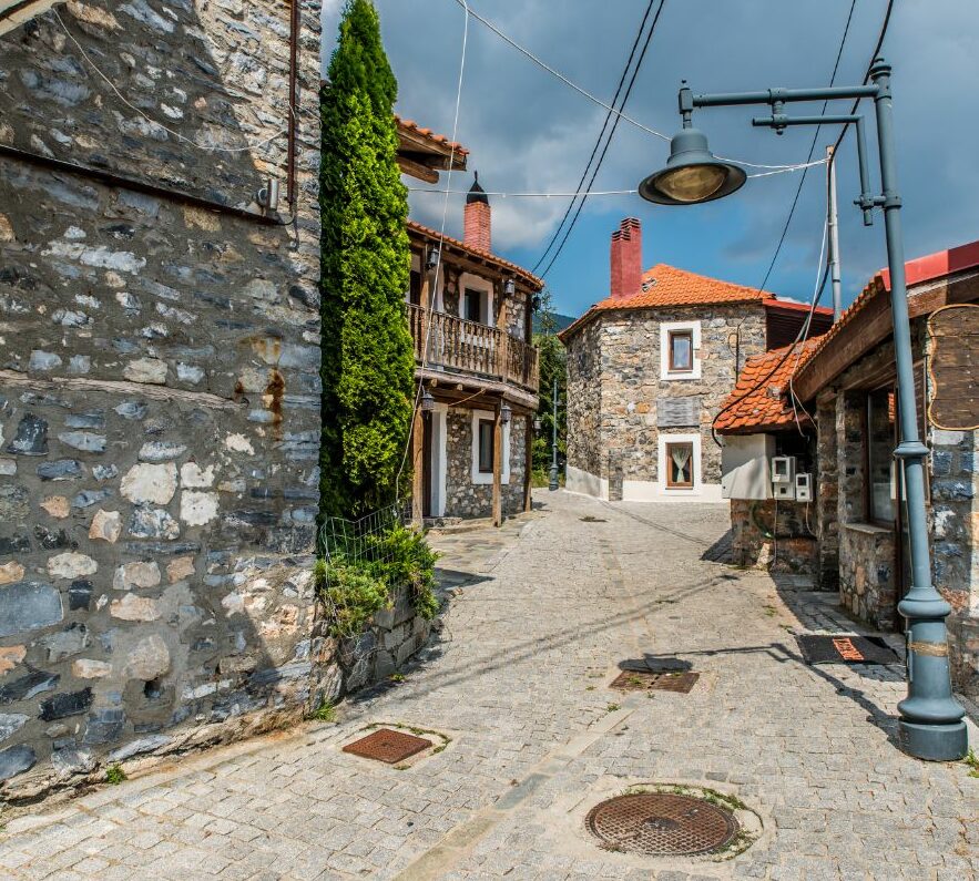 Περπατώντας στα λιθόκτιστα δρομάκια του χωριού ανάμεσα σε μακεδονίτικα σπίτια και αρχοντικά -κτισμένα από πελεκητή πέτρα και ξύλο με όμορφες κεραμοσκεπές-θαρρείς πως ταξιδεύεις πίσω στο χρόνο. Ωστόσο η κίνηση, τα πετρόκτιστα ξενοδοχεία, οι ζεστοί ξενώνες, οι γραφικές ταβέρνες, τα όμορφα καφέ, τα μικρά καταστήματα παραδοσιακών προϊόντων και ενοικίασης εξοπλισμού χειμερινών σπορ σε επαναφέρουν στο σήμερα.