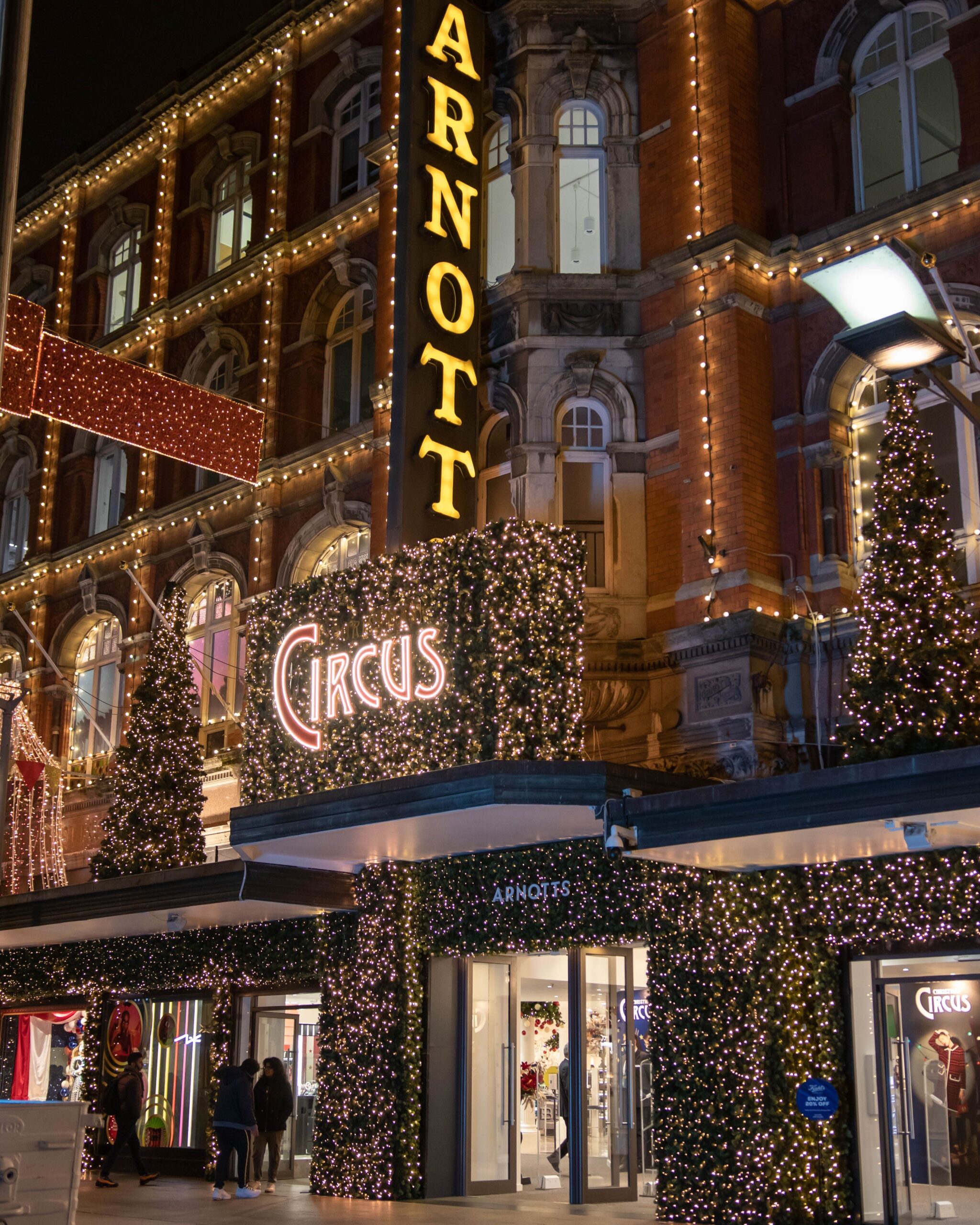 Δύο από τα πιο γνωστά πολυκαταστήματα του Δουβλίνου, που κάθε χρόνο ξεχωρίζουν για τις γιορτινές τους διακοσμήσεις, αποτελούν σταθερό σημείο αναφοράς για μικρούς και μεγάλους. Οι φωτισμένες βιτρίνες, οι σκηνές με ξωτικά και Άγιους Βασίληδες και η πληθώρα δώρων δημιουργούν ένα σκηνικό που προσελκύει επισκέπτες και ντόπιους στο κέντρο της πόλης. Ακόμη και χωρίς διάθεση για αγορές, αξίζει να σταθεί κανείς μπροστά στις βιτρίνες και να χαθεί για λίγο στους χριστουγεννιάτικους μικρόκοσμους που έχουν επιμεληθεί.