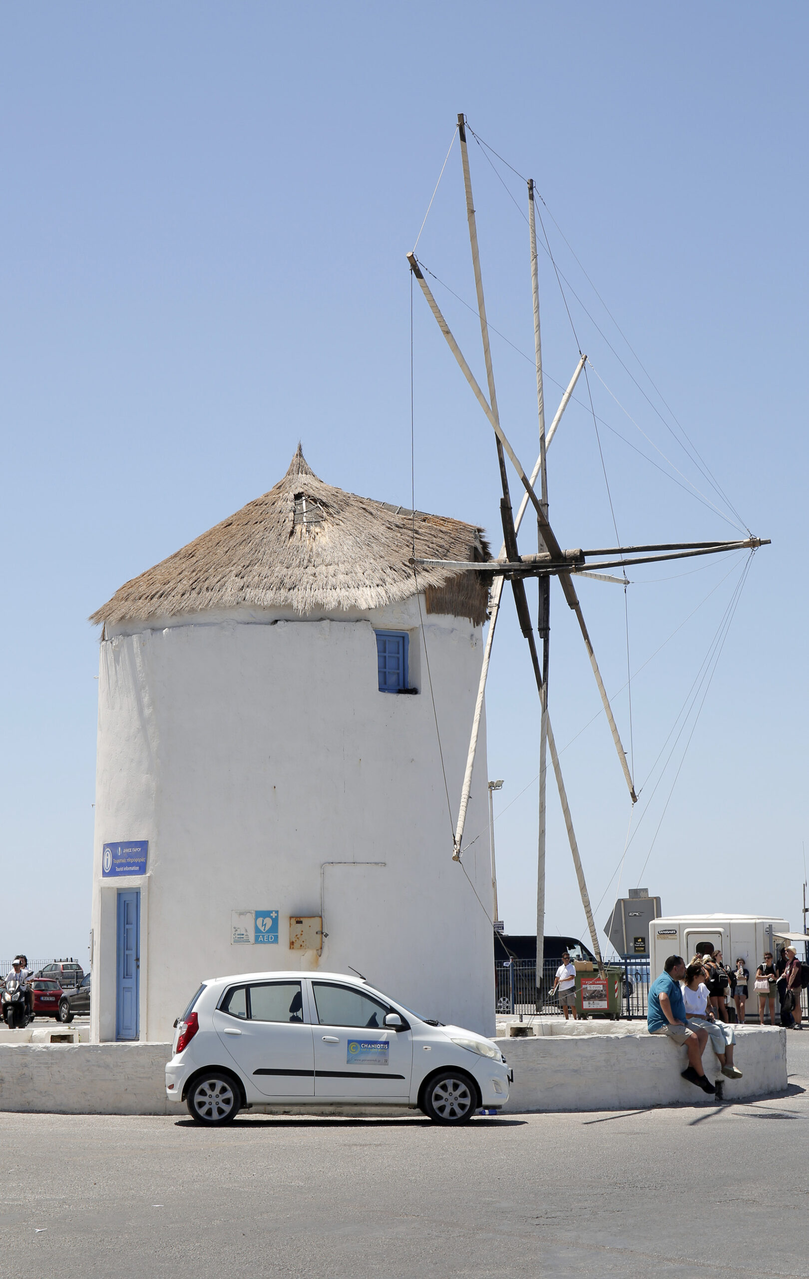 Στο λιμάνι επικρατεί ένας μικρός χαμός. Η άφιξη πολλών επιβατικών πλοίων στο λιμάνι της Πάρου, σχεδόν την ίδια ώρα, ή με μικρή χρονική απόσταση μεταξύ τους, δημιουργεί την αίσθηση δύσκολου γρίφου. Αυτοκίνητα, φορτηγά, δεκάδες ή και εκατοντάδες επιβάτες με τις τροχήλατες, χρωματιστές βαλίτσες σφιχτά κρατημένες, μπερδεύονται σε μια από τις πιο ενδιαφέρουσες εικόνες της μοντέρνας ζωής των Κυκλάδων. Κι όμως, η εμπειρία των εργαζόμενων στους προβλήτες κάνει την κατάσταση άμεσα διαχειρίσιμη. Μισή ώρα αργότερα και αφού όλα τα πλοία έχουν συνεχίσει το δρόμο τους για τα επόμενα λιμάνια, έχει επανέλθει η κανονική ροή της ζωής της Παροικιάς. Στο πεζούλι του Μύλου, σήμα κατατεθέν, τόπος αναμονής, ραντεβού αλλά και προσωρινού ύπνου παλαιότερα για αμέτρητους ταξιδιώτες, κάθονται λίγοι πια τουρίστες, περιμένοντας την παραλαβή τους από τα τράνσφερ βανάκια τα οποία κόλλησαν για λίγα λεπτά στην κίνηση του περιφερειακού. Τα καφέ μπροστά και κοντά στο λιμάνι είναι μονίμως γεμάτα κόσμο, ανθρώπους που εναλλάσσονται διαρκώς, μέσα σε ένα καλοκαιρινό βουητό, σαν μελίσσια έξω από την κυψέλη τους, απολαμβάνοντας πρωινά, ωραίους καφέδες, φρεσκοστυμμένους χυμούς και όλη τη ζωντάνια των στιγμών.