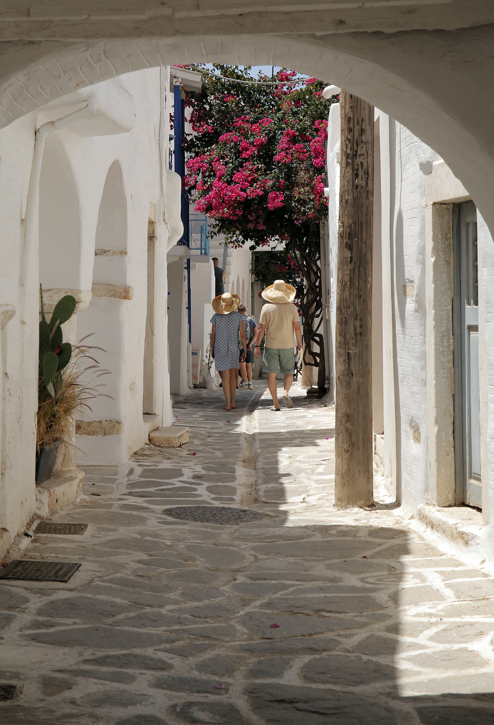 Μέσα στα στενά αλλά και πιο πλατειά σοκάκια της Χώρας, η ονειρεμένη αίσθηση των Κυκλάδων, με τις πεζούλες, τις αμέτρητες λαμπερές εκκλησίες, τα λουλούδια, τις μικρές πλατείες, τα όμορφα καταστήματα, τα καφέ και τα ταβερνεία και εστιατόρια, χαλαρώνει το βηματισμό, αυξάνει την ορμόνη της ευτυχίας, δημιουργεί απολαυστικές εικόνες στο συνειδητό και στο υποσυνείδητο. Η αισθητική μπλέκει όμορφα με την ιστορικότητα της Παροικιάς, από το Αρχαίο Νεκροταφείο το οποίο φέρεται να λειτουργούσε από τον 8ο μέχρι το 2ο π.Χ. αιώνα, το ελληνιστικό κεραμικό εργαστήριο στη θέση «Θολάκια» στον περιφερειακό δρόμο, το «Καστροβούνι» με οικίες της ελληνιστικής περιόδου με ψηφιδωτά δάπεδα, τη θέση «Άγιος Παντελεήμων» κοντά στο μουσείο με πλήθος ευρημάτων από την ιστορία της Παροικιάς μέσα στους αιώνες, αλλά και το Κάστρο μέσα στα στενά και, φυσικά, την εκκλησία της Παναγίας της Εκατονταπυλιανής.