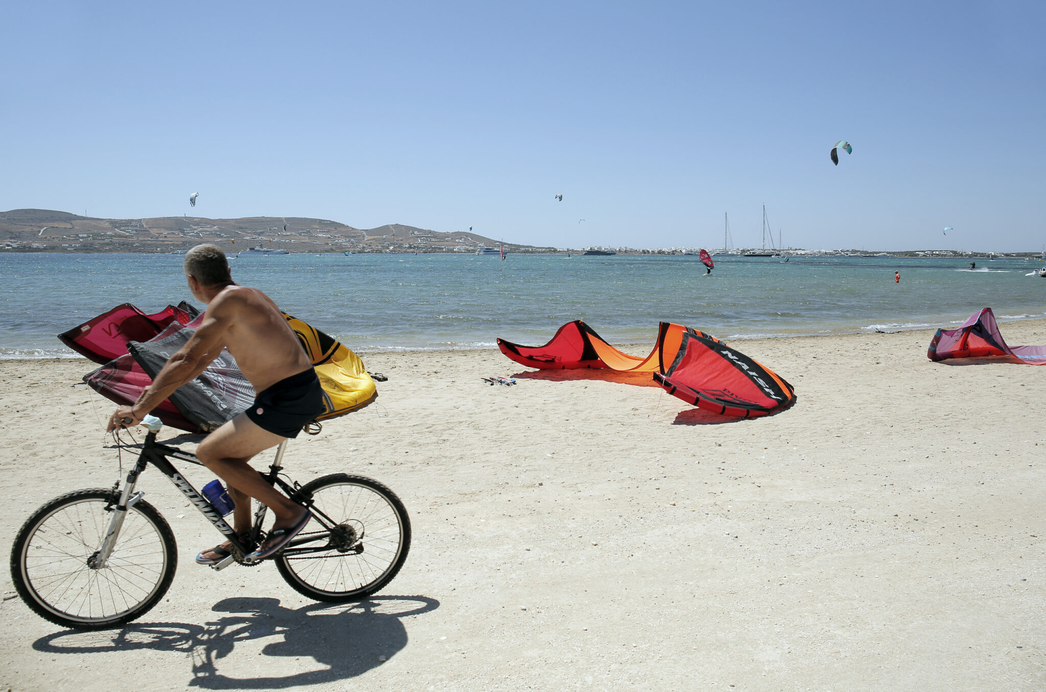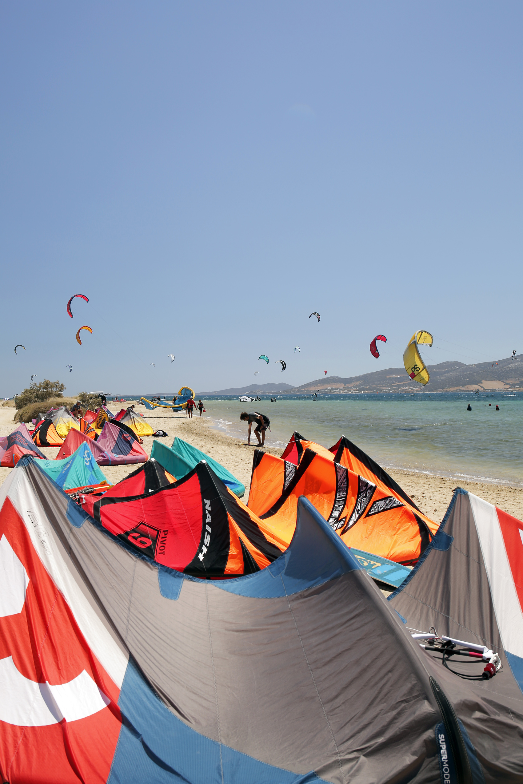 Στην ακτή της Πούντας, στον κλειστό κόλπο που χωρίζει την Πάρο από την Αντίπαρο, δεκάδες χρωματιστά πανιά με «αόρατους» σπάγγους σχίζουν τον γαλανό ουρανό με τους kite surfers από, κυριολεκτικά, κάθε γωνιά του πλανήτη, να αφήνουν τον αφρισμένο δρόμο τους πίσω από τη σανίδα τους. Αθλητισμός, θάλασσα, καυτός ήλιος, δυο νησιά, μια Βαβέλ πολύγλωσση, μια ανοιχτή πρόσκληση, δε νομίζω πως υπάρχει πιο ταιριαστή, τελευταία εικόνα πριν αναχωρήσω από την όμορφη Πάρο.