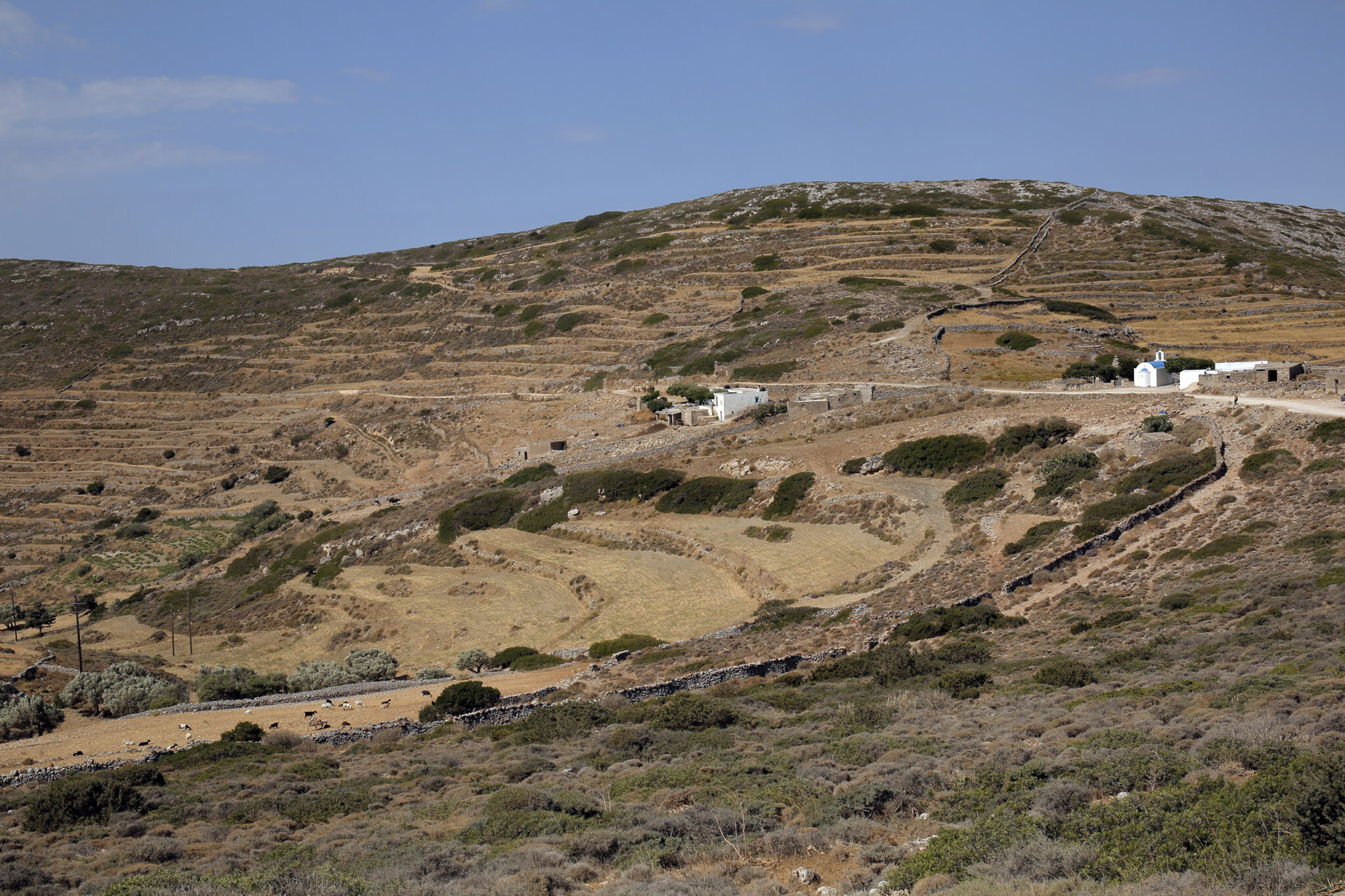 Υπάρχουν εναλλακτικές διαδρομές σχεδόν για κάθε προορισμό στην Πάρο, όλες βατές, είτε ασφάλτινες είτε καλές χωμάτινες, είτε παραλιακά, σε μια υπέροχη κυκλική πορεία με μόνιμη θέα τη θάλασσα, είτε από το εσωτερικό, ανάμεσα σε ράχες, υψώματα, μαντριά, λευκά εκκλησάκια τα οποία σπάνε το μονότονο καφετί, αμπέλια και άλλα καλλιεργήσιμα χωράφια. Το GPS επιλέγει να με οδηγήσει προς το χωριό Λεύκες από μια τέτοια διαδρομή. Από την Αγκαιριά ακόμη αρχίζει η περιπετειώδης, φιδωτή, χωμάτινη και, σε σημεία, τσιμεντένια διαδρομή, ανεβάζοντάς με πολύ γρήγορα σε θεαματικό υψόμετρο. Από 0 σε 400 μέτρα, σε μισή ώρα, με τη θέα, λίγο μετά από τη Μονή Αγίων Θεοδώρων, να κόβει την αναπνοή, πριν την επαναφέρουν σε τάξη οι δυνατές ριπές του αέρα.