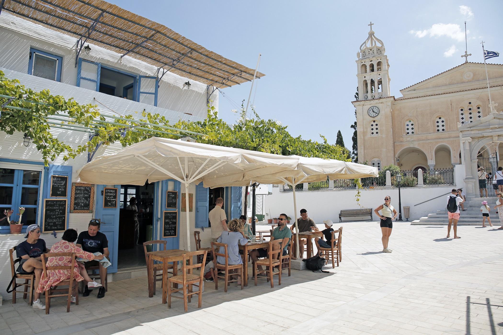 Απέναντι από τη στιβαρή Αγία Τριάδα, εντωμεταξύ, βρίσκεται η καινούρια θέση του προαναφερθέντος «Καφενείου της Μαριγώς» (2284 044014), με μια τεράστια μπουκαμβίλια να μισοκρύβει την είσοδό του. Προσφέρει καφέ, νόστιμη πορτοκαλόπιτα, σπιτική λεμονάδα, αλλά και μεζέδες για σούμα και μπύρα.