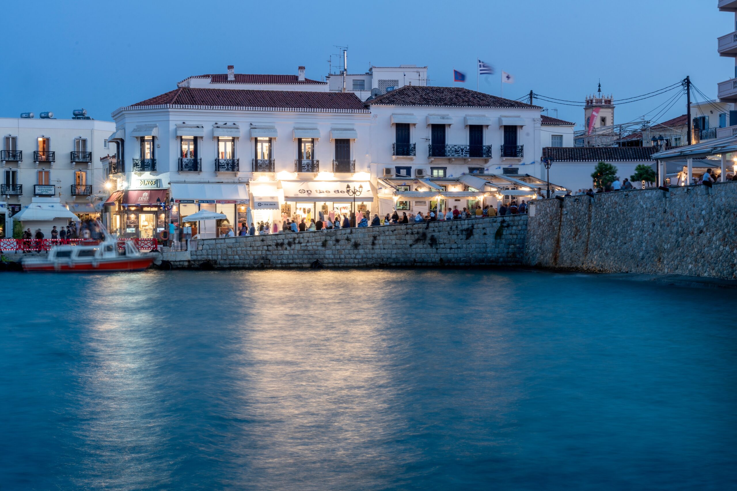 Πολύ όμορφη και δημοφιλής ψαροταβέρνα πάνω στο κύμα. Η οικογένεια Καλοσκάμη συνδέεται με την ψαροσύνη πολλαπλά, αφού διαθέτει εκτός από την ταβέρνα, ψαρομάγαζο στην αγορά και κυρίως δικά της ψαροκάικα, εγγύηση για ολόφρεσκο ψάρι που θα διαλέξετε από τη βιτρίνα. Είναι ακριβώς αυτά τα ολόφρεσκα ψάρια που κάνουν τη διαφορά. Ψητά στη σχάρα «αλά Σπετσιώτα», σε κρούστα από αλάτι, ή ψητά με λαχανικά, τηγανητά ψαράκια και ακόμα σε μια ψαρόσουπα-βάλσαμο. Τα ορεκτικά είναι τα κλασικά, ταραμοσαλάτα, μελιτζανοσαλάτα, και κάποια μοντέρνα, όπως καρπάτσιο από ψάρι ημέρας. Ο Ταρσανάς έχει και αδελφάκι, το «Νερό της Αγάπης» στην Κουνουπίτσα με θαλασσινά και μεσογειακή κουζίνα. Γοητευτική θέα στο Φάρο και στα αρχοντικά.