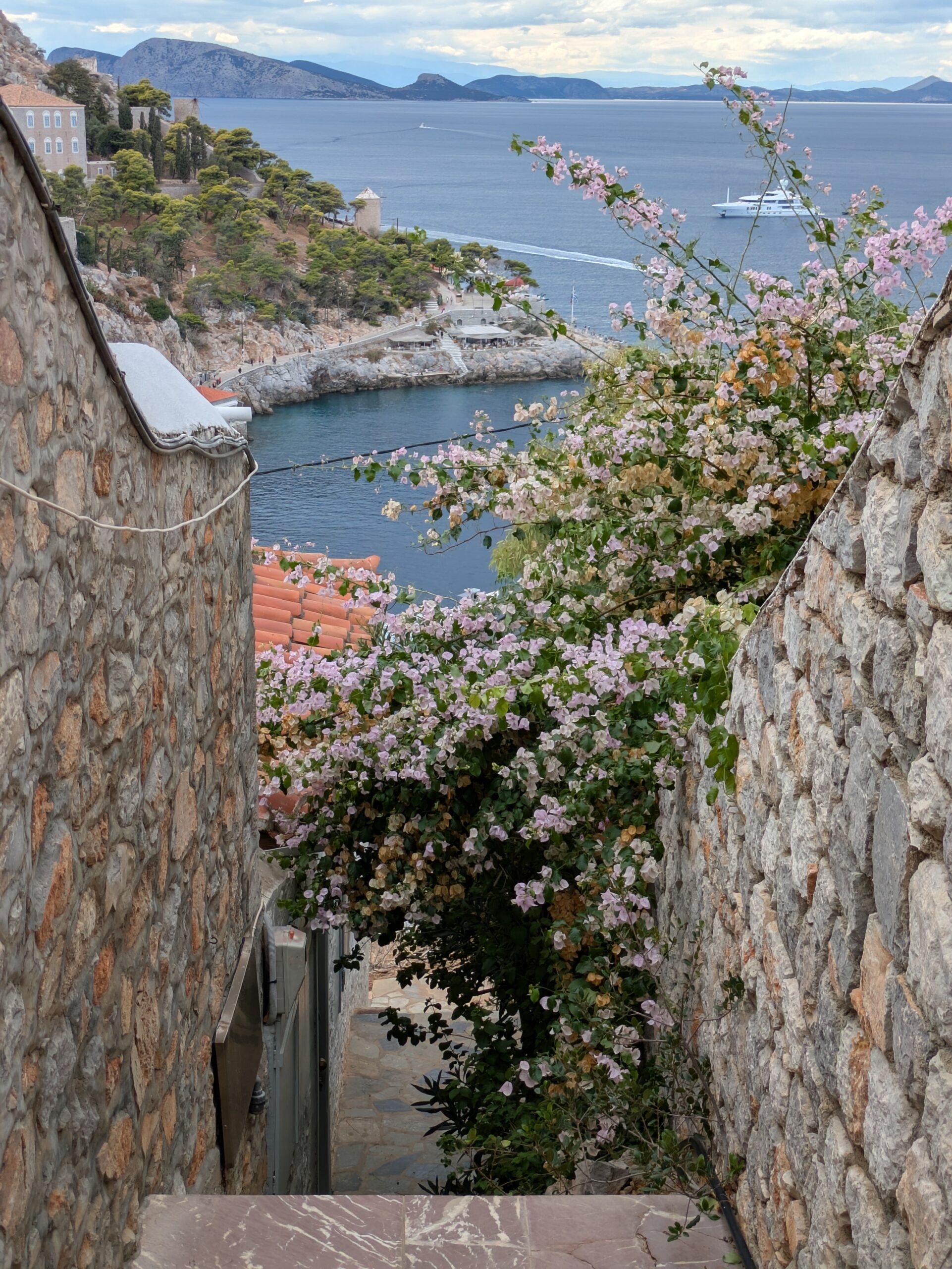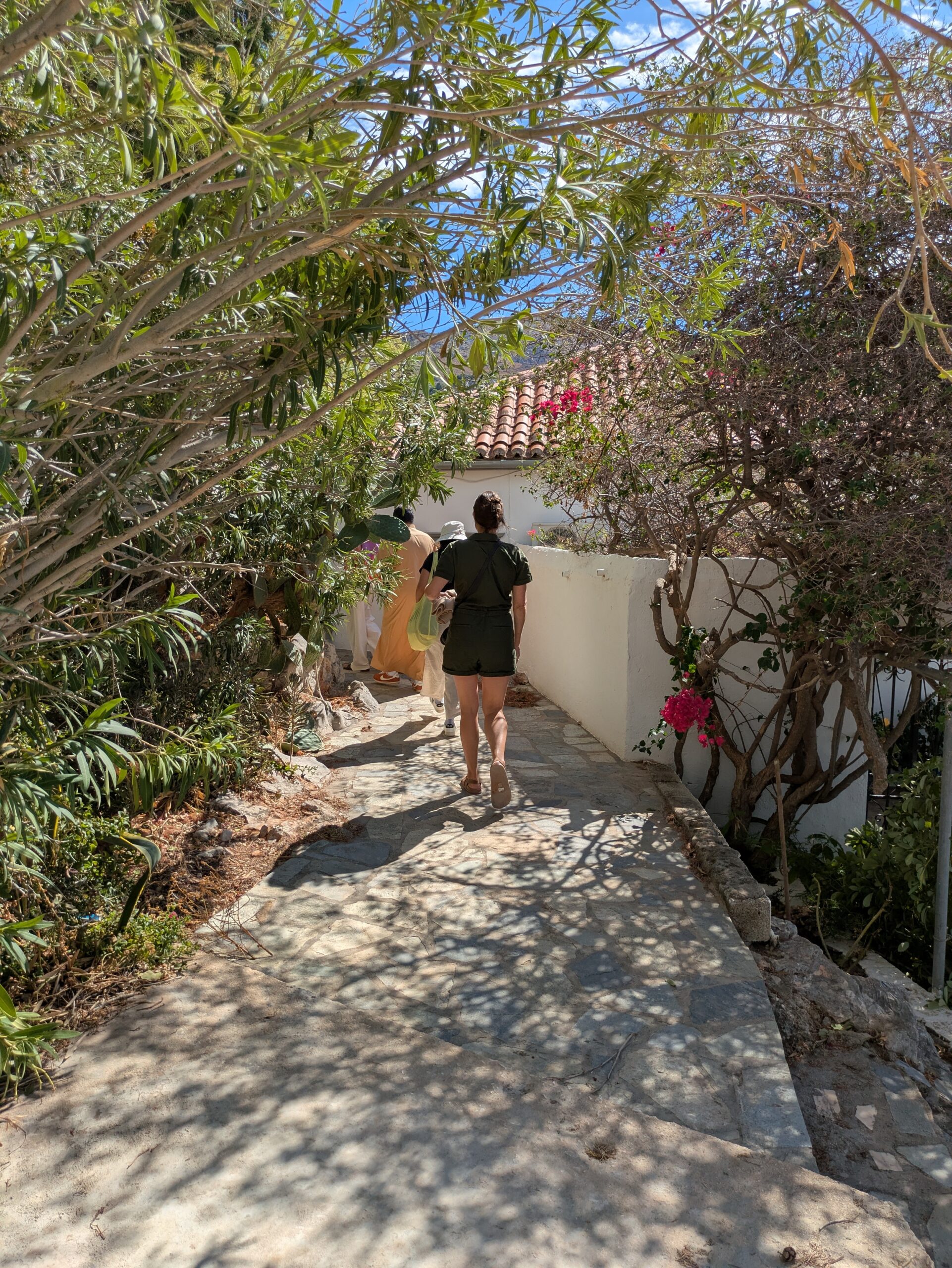 Καθώς ανηφορίζεις από το λιμάνι της Ύδρας σε έναν από τους λόφους της, ύστερα από λίγα μόλις μέτρα, χάνεις κάθε οπτική επαφή με τα καταστήματα και τα εστιατόρια, ενώ σχεδόν σβήνει η βοή από τα πλήθη τουριστών που, ειδικά τα Σαββατοκύριακα, πλημμυρίζουν την αποβάθρα. Είναι σαν να μη μετακινείσαι απλώς, αλλά να διακτινίζεσαι σε ένα διαφορετικό σύμπαν, κοινωνοί του οποίου γίνονται αποκλειστικά οι κάτοικοι του νησιού και λίγοι επίμονοι περιπατητές.