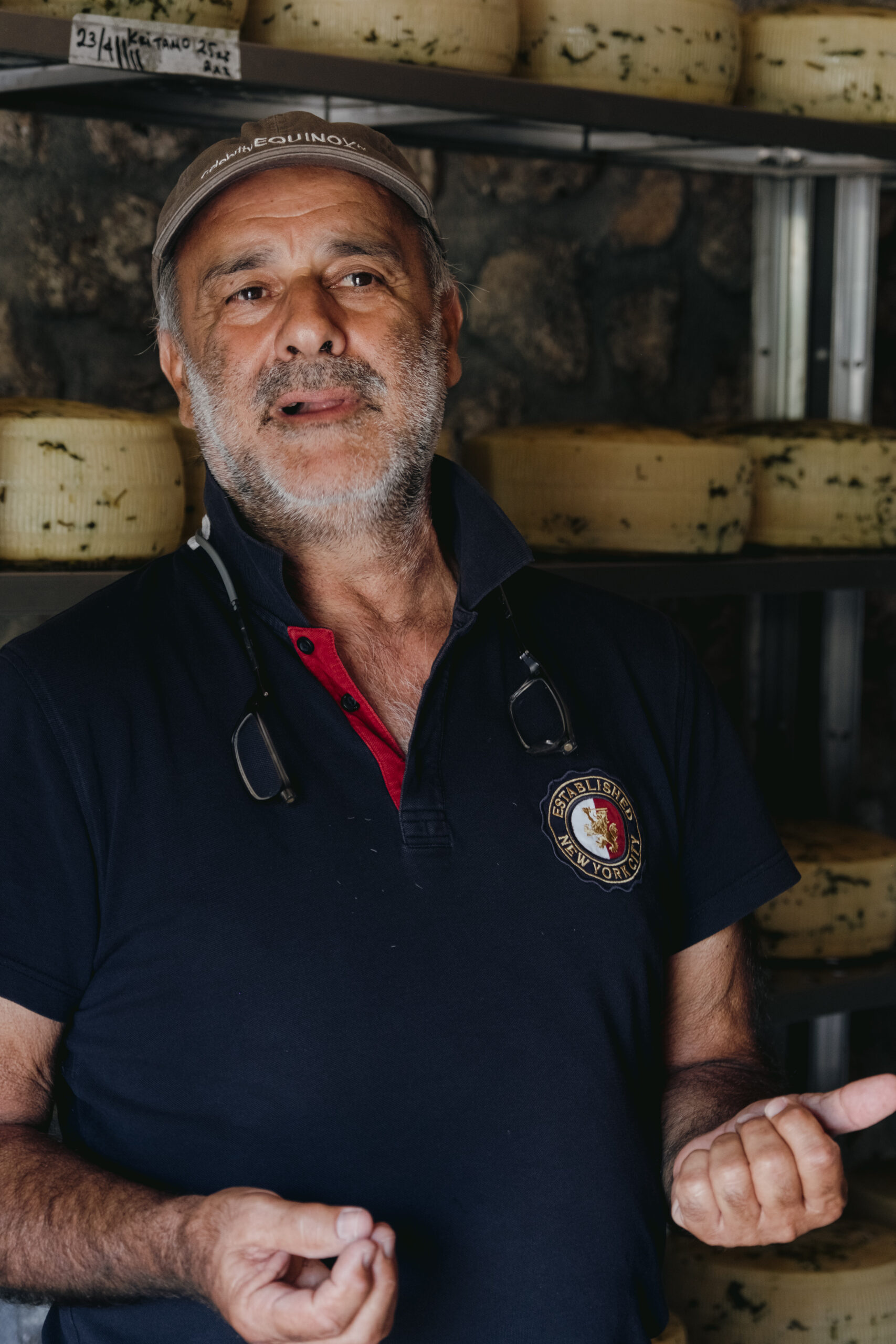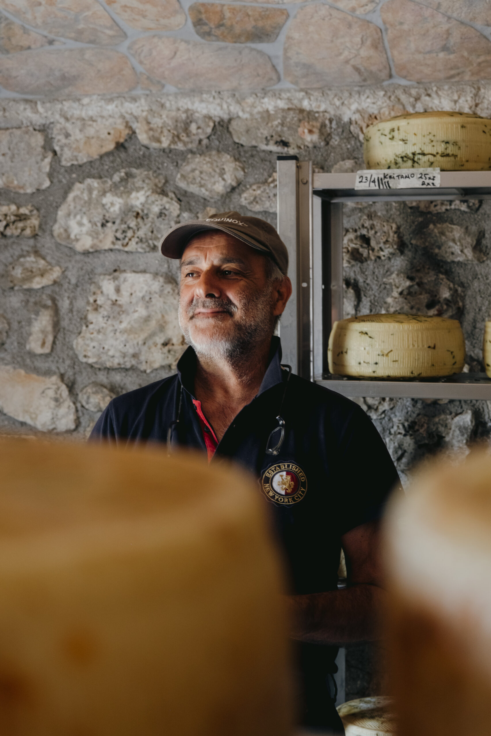 Καθώς περιπλανιόμαστε ανάμεσα στα τυριά που ωριμάζουν στη σπηλιά, ο Χρύσανθος μοιράζεται μαζί μας τη φιλοσοφία του. «Δημιουργώ τυριά από ντόπιο γάλα. Με αφετηρία τον μύθο και την παράδοση, τα τυριά μου εμποτίζονται με τον θαλασσινό αέρα και το μεράκι που τα κάνουν ξεχωριστά».