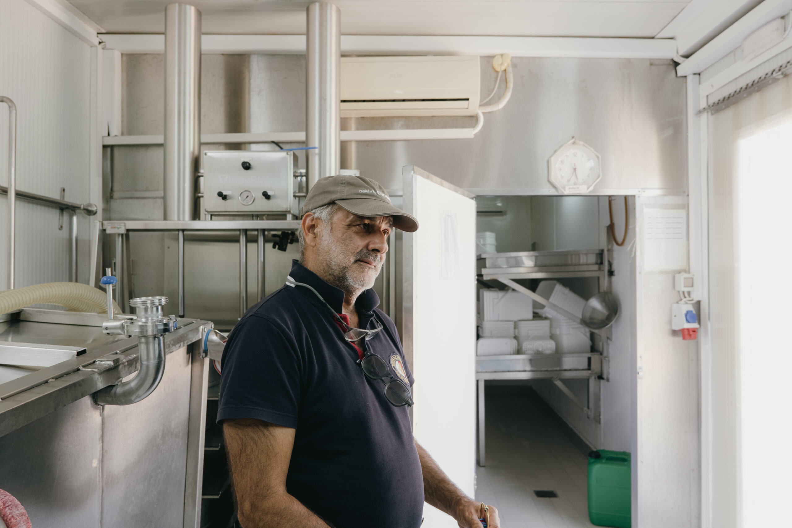 Το τυροκομείο λειτουργεί με όλα τα σύγχρονα πρότυπα ασφάλειας, αλλά η «ψυχή» του βρίσκεται αλλού. Μας οδηγεί στη σπηλιά όπου παλαιώνει τα τυριά του, και εκεί, ανάμεσα σε δεκάδες κεφάλια που ωριμάζουν αθόρυβα, ο Χρύσανθος μας μιλάει για το όραμά του. «Καθημερινά, ζώντας εδώ, συνειδητοποιούσα ότι γύρω μου υπήρχαν αγνές πρώτες ύλες», εξηγεί με τα μάτια του να λάμπουν. «Από το γάλα των τοπικών ζώων που ζουν ελεύθερα στη φύση, μέχρι τα μοναδικά βότανα που φύονται παντού, αλλά και το ιδιαίτερο φυσικό περιβάλλον αυτού του τόπου». Η αρχική του σκέψη ήταν απλή: να αγοράζει το γάλα του νησιού και να φτιάχνει τοπικά τυριά. Μία προσπάθεια που όχι μόνο πέτυχε, αλλά σήμερα πλέον αγοράζει όλη την ποσότητα του γάλακτος που παράγεται στο νησί.