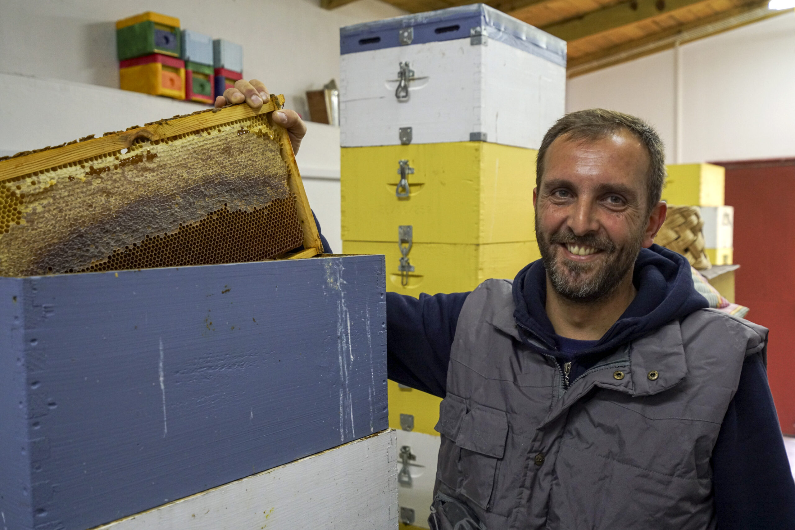 Επιστρέφοντας όμως στα Κρύα Νερά και στο εργαστήριο μελισσοκομίας, βρισκόμαστε στην είσοδο. Πολύ γρήγορα ο Σάββας φθάνει και ξεκινάμε τη συνομιλία μας. Πρόκειται για μία μικρής κλίμακας παραγωγική μονάδα την οποία την ξεκίνησε πριν από 9 χρόνια. «Έφτασε ένα σημείο, κάπου εκεί στο 2015, τότε που τα πράγματα ήταν πολύ δύσκολα να ψάχνω να κάνω κάτι νέο. Μέχρι τότε, η βασική μου ενασχόληση ήταν οι υδραυλικές εγκαταστάσεις, αλλά μία σειρά γεγονότων με οδήγησαν στο να το σταματήσω», θα μας πει για να συνεχίσει όμως με το εξής: «Αποφάσισα να ασχοληθώ με τις μέλισσες βλέποντας το ως δουλειά, και μάλιστα ως μία δουλειά που θα σου αποδώσει τον ίδιο χρόνο, αλλά γρήγορα ερωτεύτηκα τις μέλισσες. Ερωτεύτηκα την διάρθρωση της κοινωνίας τους. Την ιεραρχία και τον τρόπο με τον οποίο εργάζονται». Ήθελε να μάθει τα πάντα, ήθελε να γνωρίσει αυτή τη μοναδική κοινωνία τους και να καταφέρει να παράγει μέλι με κυριότερο χαρακτηριστικό την ποιότητα.