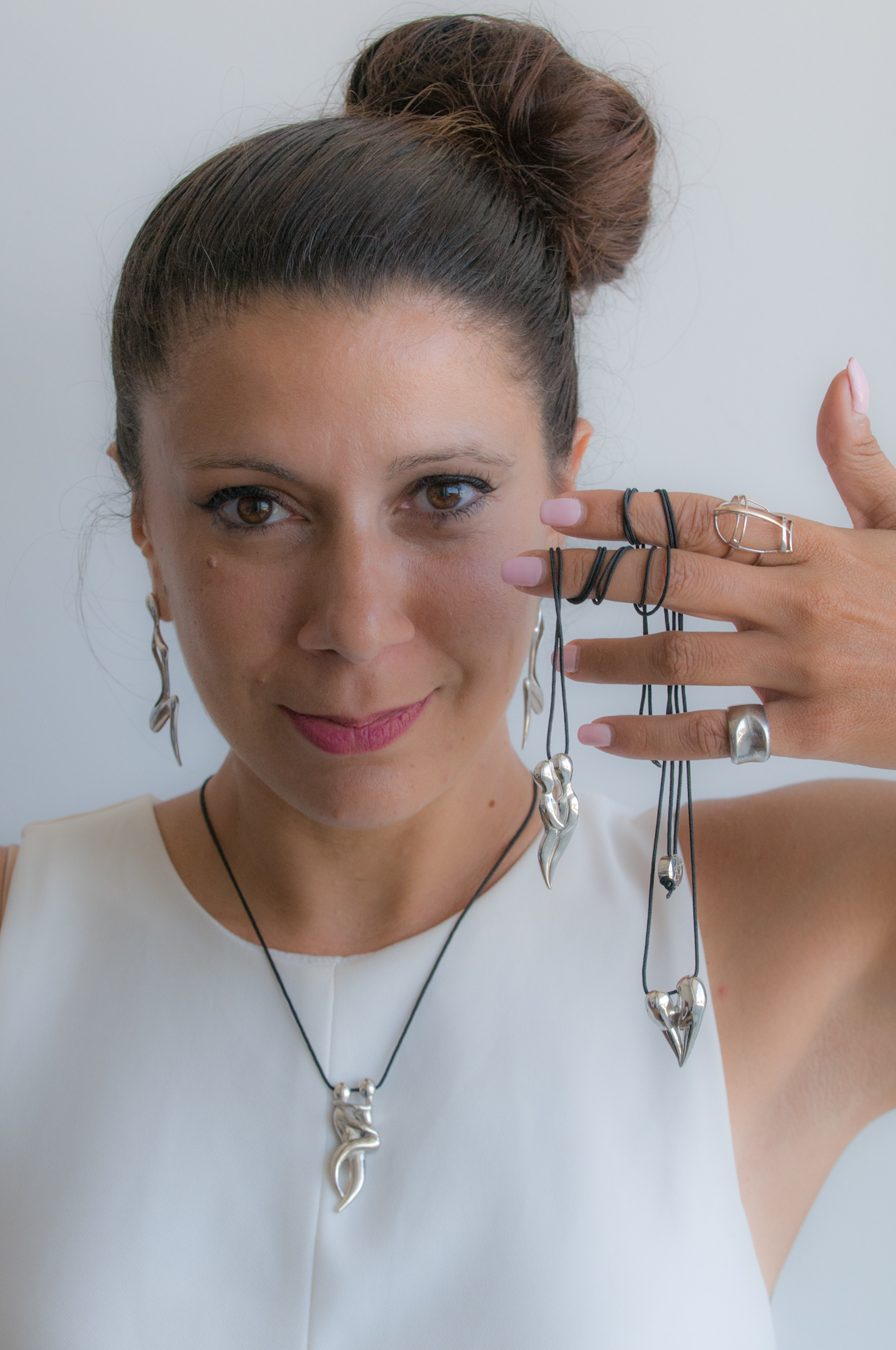 Η Δώρα Κουνάκη είναι ένας άνθρωπος με βαθιά γνώση και αγάπη γι’ αυτό που κάνει. Αυτή την εποχή, διανύει μία ιδιαίτερη δημιουργική περίοδο. «Παίρνω τα σύμβολα της Ρόδου, τα φέρνω σε μοντέρνες λιτές γραμμές και σχεδιάζω με σουρεαλιστικό τρόπο. Μου αρέσουν οι συμβολισμοί. Το σήμα κατατεθέν μου είναι το ελάφι της Ρόδου. Στο παλιό λιμάνι που στέκουν αντικρυστά στις ψηλές κολώνες το αρσενικό με το θηλυκό ελάφι, θυμάμαι τον εαυτό μου να είναι πάντα εκεί όταν θέλει να σκεφθεί, να γιορτάσει, να μοιραστεί, να χαρεί. Εκεί το πρώτο τσιγάρο, το πρώτο φιλί. Στο κόσμημα που σχεδίασα, το ελαφάκι μοιάζει να πετάει. Όπως αυτά που αναπαριστούσαν στις βραχογραφίες οι προϊστορικοί άνθρωποι. Καθένας βλέπει ό,τι θέλει. Ίσως όχι ελάφι. Έχω ακούσει να μου λένε ότι μοιάζει με κύμα, δράκο, μάσκα και διάφορα άλλα. Ανάλογα με τη φαντασία, τη διάθεση και την ψυχολογία που φέρει ο κάθε άνθρωπος τη δεδομένη χρονική στιγμή». Της ζητάω να μου το δείξει κι ενώ το περιεργάζομαι τη ρωτάω: Ο συμβολισμός που είναι; «Στο πίσω μέρος του λαιμού είναι κρυμμένη μια καρδιά που συμβολίζει την αγάπη μου για τη Ρόδο. Αν γυρίσεις το ελάφι ανάποδα, έχει σχήμα καρδιάς που συμβολίζει την αγάπη για τον παππού μου, που μου έμαθε να σχεδιάζω».