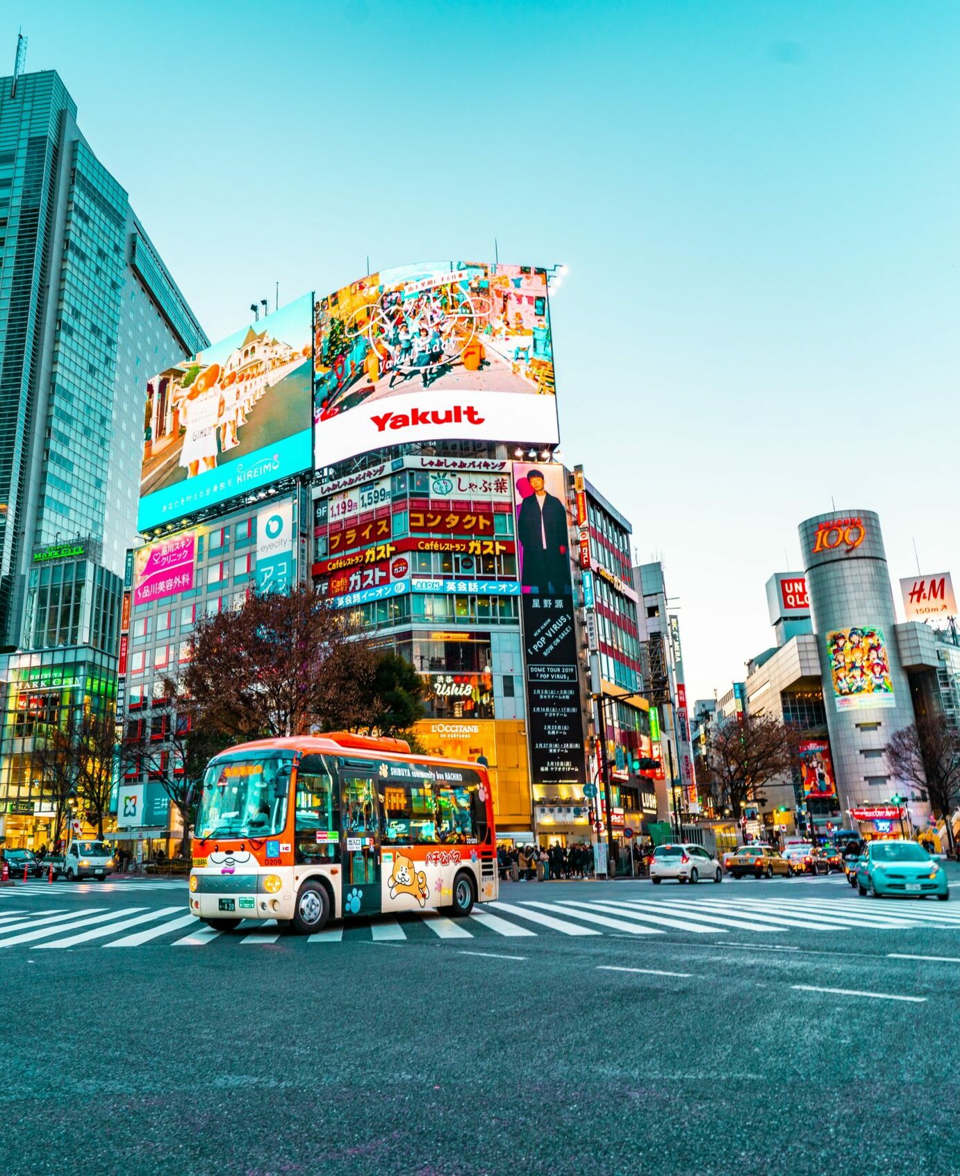 Τον πρώτο μου χρόνο, έμενα στην περιοχή Κομάμπα (Komaba), η οποία βρίσκεται σε περπατήσιμη απόσταση από την Σιμπούγια (Shibuya). Η Shibuya αποτελεί ένα από τα πιο γνωστά σημεία της πόλης, έχει αισθητική Time’s Square με γιγαντοοθόνες και φώτα. Εκεί, βρίσκεται το Shibuya Crossing, μια διάβαση που διασχίζει τον δρόμο διαγώνια. Δεν είναι η μόνη στην Ιαπωνία αλλά είναι η πιο πολυσύχναστη διάβαση πεζών στον κόσμο με χιλιάδες ανθρώπους να την διασχίζουν ταυτόχρονα.