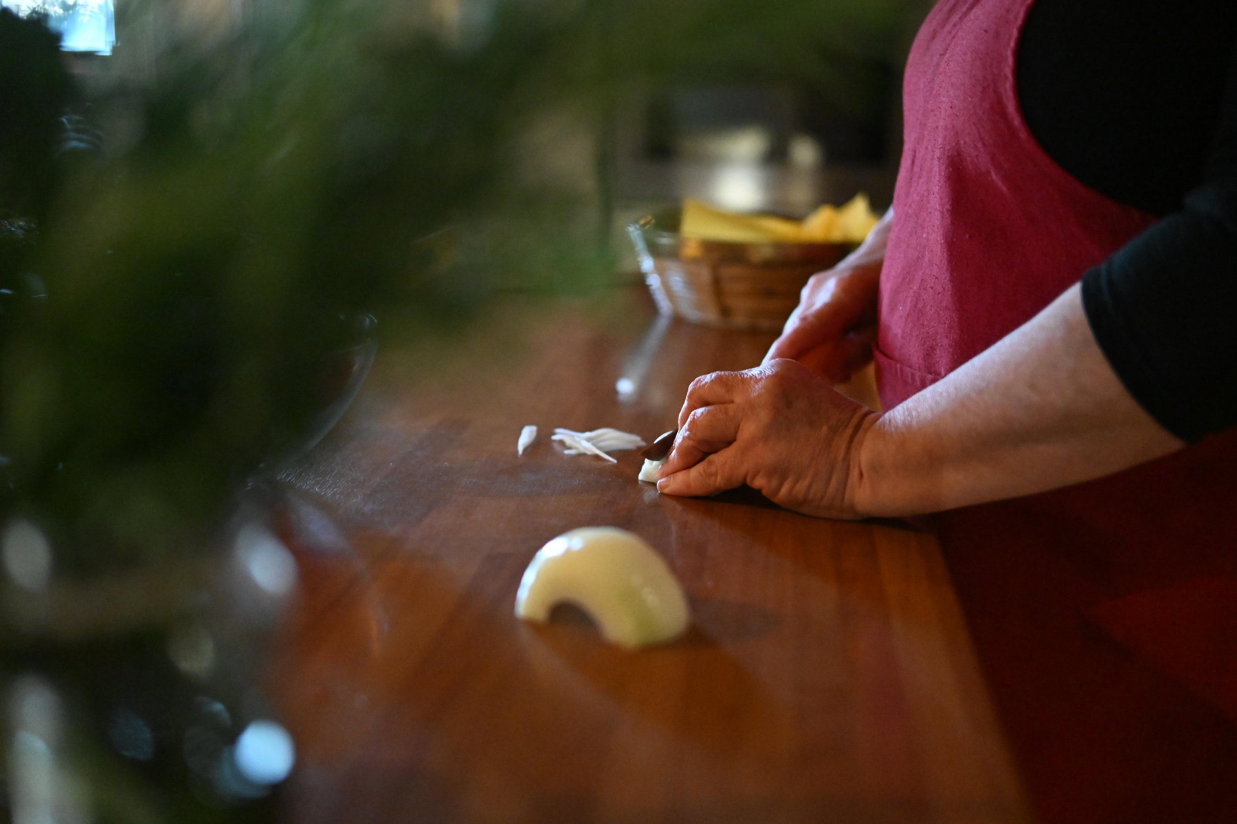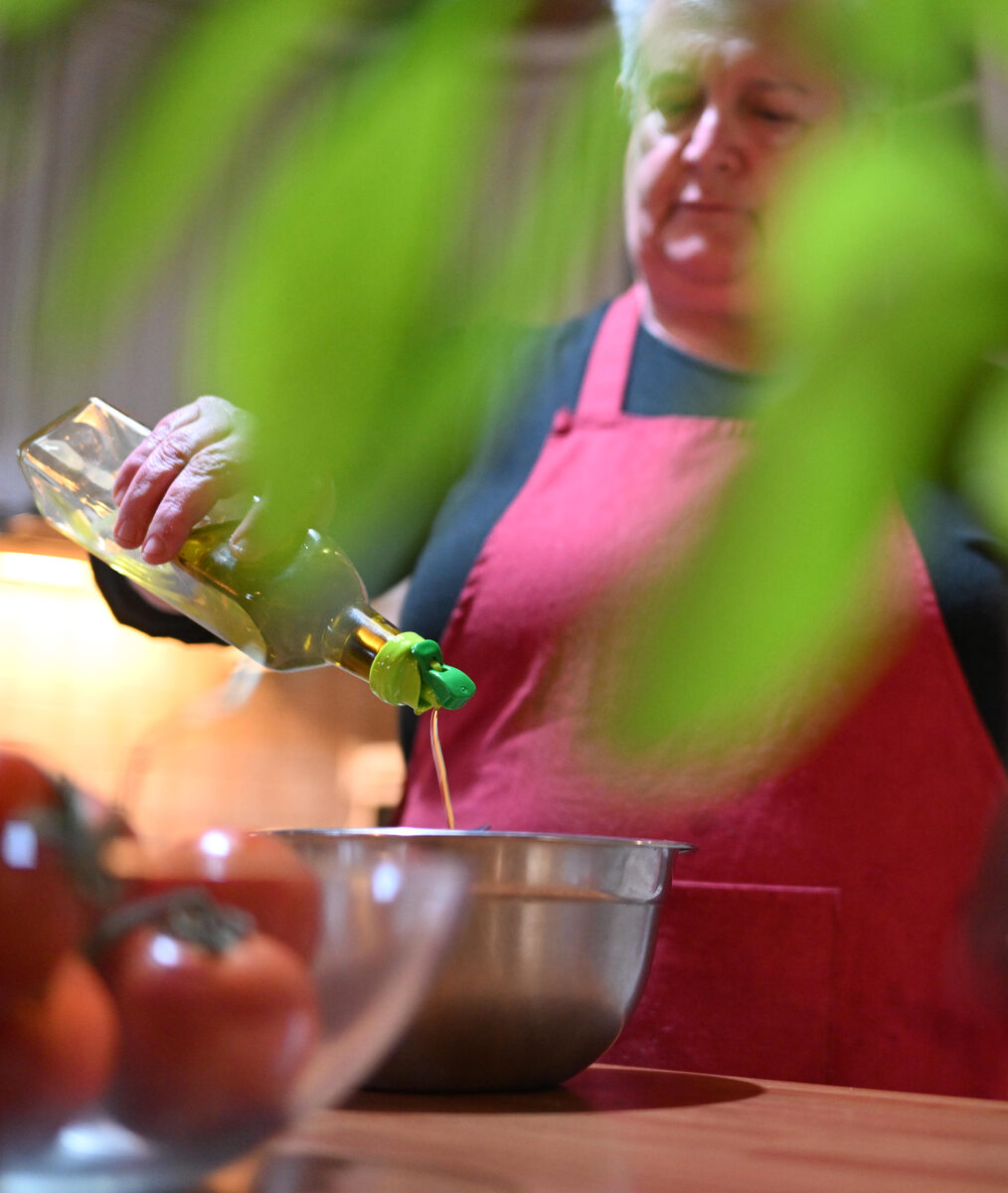 Σήμερα, στην κουζίνα του σπιτιού στην Ίκλαινα, οι δύο γυναίκες μας ταξιδεύουν στον κόσμο των μεσσηνιακών γεύσεων. Η Τέτη έχει ήδη μαζέψει φρέσκα βότανα από την αυλή -δυόσμο, ρίγανη, δενδρολίβανο- που αρωματίζουν τον χώρο με τη φυσική τους ουσία. «Όταν χρειαζόμαστε μυρωδικά, βγαίνουμε απλώς έξω», λέει γελώντας η Νατάσα, δείχνοντας προς την αυλή όπου μικροί θάμνοι, κρύβουν θησαυρούς γεύσης.