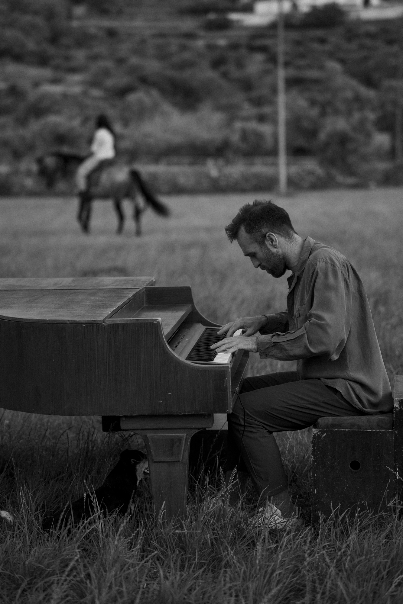 «Υπάρχει μεγάλη ανάγκη για παρέα και αληθινό μοίρασμα. Ξέρετε, είναι πονηρή η εποχή: έντεχνα μας οδηγεί στο να αποσυνδεόμαστε, ενώ την ίδια στιγμή είναι η ίδια που μας πουλά αμέτρητους τρόπους και δίκτυα για να συνδεθούμε. Ειδικά στην επαρχία, όπου ταξιδεύω με την τέχνη μου, υπάρχει μεγάλη ανάγκη για τη δημιουργία πραγμάτων. Η εγκατάλειψη και η παραμέληση που υπάρχει σε αυτά τα μέρη είναι πολιτική επιλογή. Τον Σεπτέμβριο του ’23 ταξίδεψα μέχρι το Νεοχώρι της Λευκάδας, ένα ορεινό χωριό με 25 μόνιμους κατοίκους. Την προηγουμένη της παράστασης, ρώτησα τους ντόπιους εάν υπάρχει κάποιο παιδί στον τόπο αυτό. «Ένα. Μόνο ένα» μου απάντησαν. Το απόγευμα το έφεραν οι γονείς του και το μωρό κάθισε πάνω στο πιάνο. Καθώς με κοιτούσε και το κοιτούσα κι εγώ, ήταν σαν εκείνο το μωρό να έφερε όλες τις πιθανότητες του κόσμου: την ομορφιά, τη δημιουργία, τη ματαίωση. Η ζωή είναι οι επιλογές μας. Με συγκινεί λοιπόν να παλέψω για τη δημιουργία μίας δυνατότητας. Γι’ αυτό το ένα και μοναδικό παιδί που όλοι οι άνθρωποι φέρουμε μέσα μας». Συνεχίζω τις ερωτήσεις πάνω στο θέμα των ανθρώπινων σχέσεων -καθώς όλη η τέχνη του Μελαχρινού είναι ανθρωποκεντρική και αξίζει να της δοθεί ο χώρος που της πρέπει- τον ρωτάω λοιπόν σχετικά με τις ανάγκες των ανθρώπων και ότι τις αντιλαμβάνεται εκείνος. Ποια είναι η ανάγκη που βγαίνει στο προσκήνιο μέσα από την επαφή σου μαζί τους; «Σ’ ευχαριστώ που ήρθες μέχρι εδώ». Αυτό είναι κάτι που έρχεται αρκετά συχνά στα χείλη των ανθρώπων που συναντώ» μου απαντά, και συνοψίζει άθελά του όλη την επιβράβευση που χρειάζεται ένας άνθρωπος για να αντιληφθεί πως κάτι κάνει καλά.