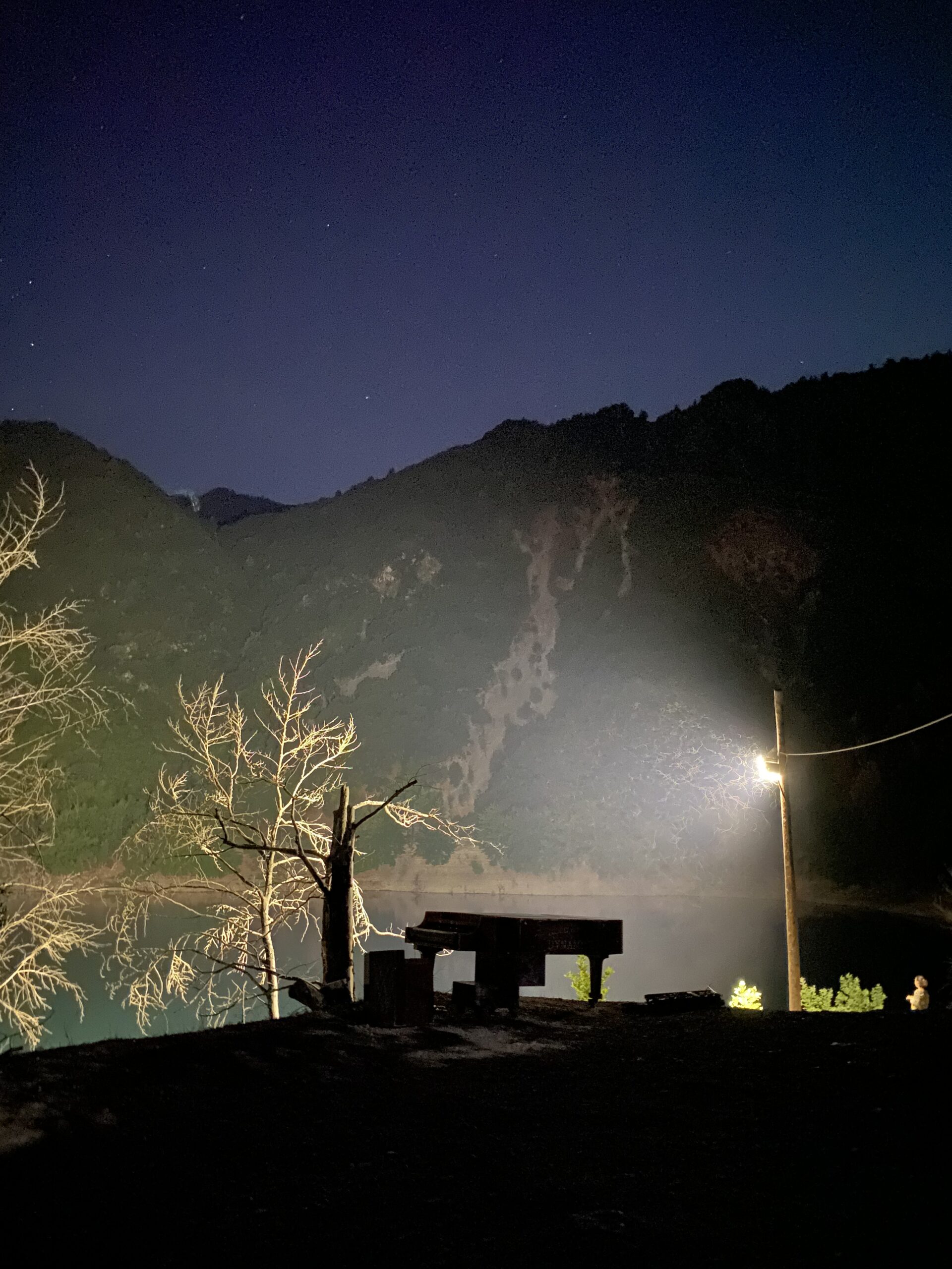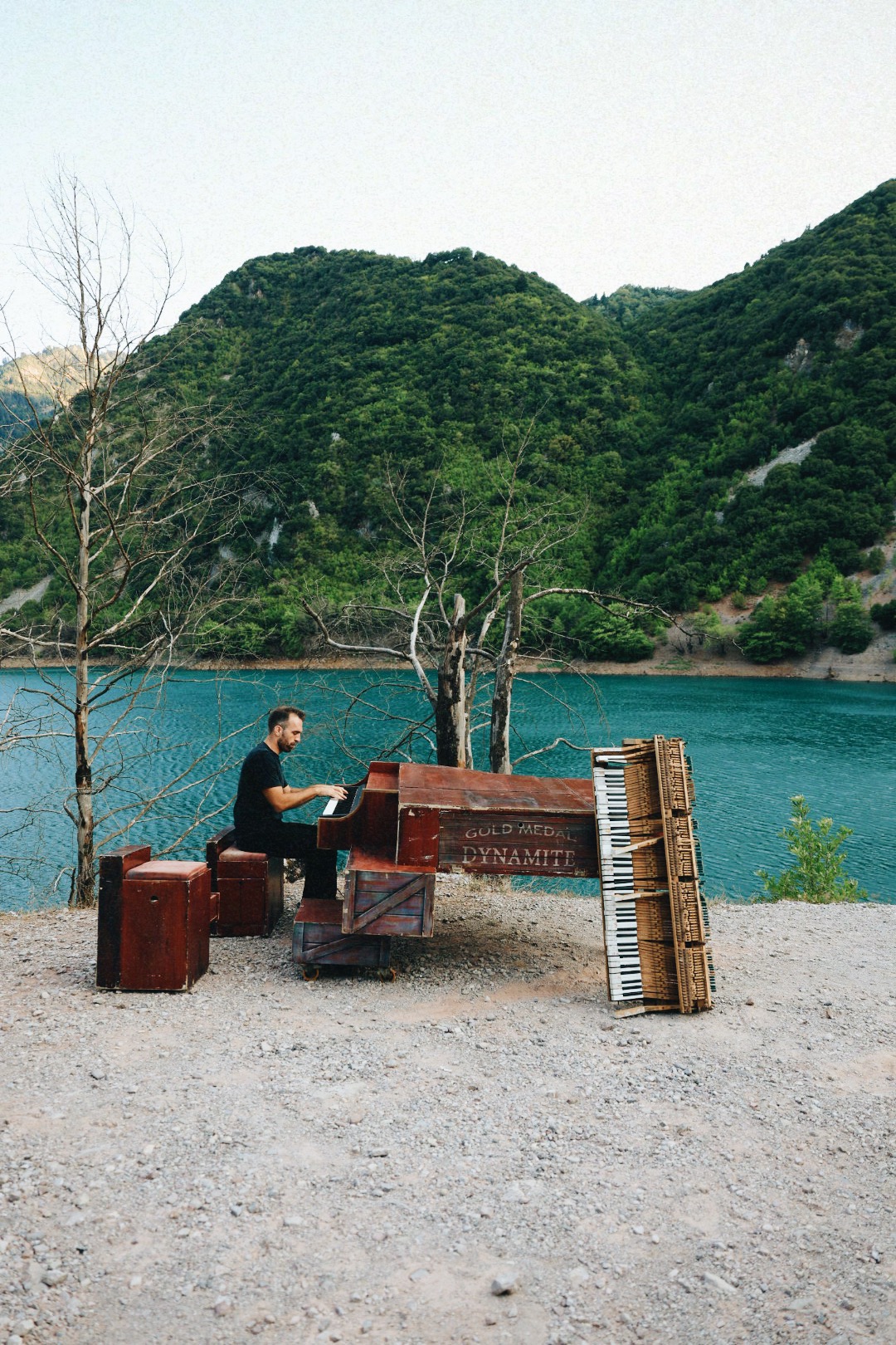 «Αυτό το καλοκαίρι, παρέα με το πιάνο μου διασχίσαμε τα βουνά των Αγράφων. Φτάσαμε μέχρι τη Λίμνη Στεφανιάδα. Το βράδυ, όταν ολοκληρώσαμε το στήσιμο της παράστασης, το πιάνο έστεκε στην άκρη του χωμάτινου υψώματος. Γύρω μας απλωνόταν η επιβλητική ησυχία της λίμνης με ένα αχνό φως να λούζει την επιφάνεια του νερού. Με θυμάμαι να ψιθυρίζω: «Σαν παραμύθι είναι». Έκλεισα τα μάτια μου και άκουγα τους ήχους της λίμνης. Ησυχία και απουσία ανθρώπινης παρέμβασης. Ήχους που θα συναντούσαν την ανάγκη μου για αφαίρεση, απλότητα και σύνδεση».