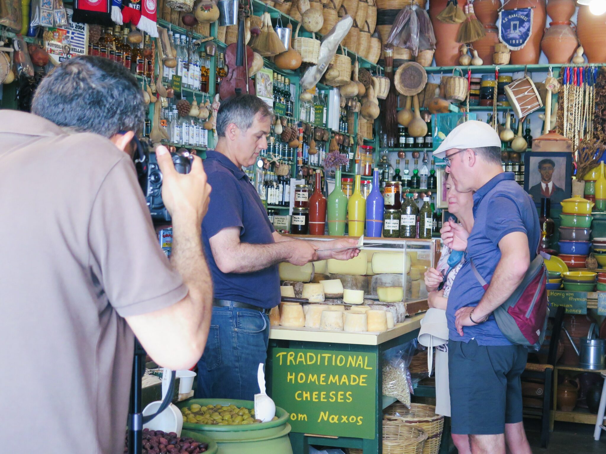 Αμέσως μετά, τον ρωτάμε ποια είναι τα προϊόντα που, κατά τη γνώμη του, κάνουν το μαγαζί να ξεχωρίζει, και εκείνος μας απαντά: «Τα προϊόντα που πιστεύουμε ότι κάνουν το παντοπωλείο μας να ξεχωρίζει είναι αναμφισβήτητα τα τοπικά τυριά. Η Νάξος έχει πλούσια τυροκομική παράδοση και οι ντόπιοι παραγωγοί συνεχίζουν να φτιάχνουν τυριά με τον παραδοσιακό τρόπο, μια γνώση που μεταφέρεται από γενιά σε γενιά εδώ και αιώνες. Τα τυροκομικά προϊόντα της Νάξου έχουν μεγάλη νοστιμιά λόγω του παραδοσιακού τρόπου παραγωγής και του μικροκλίματος της περιοχής».