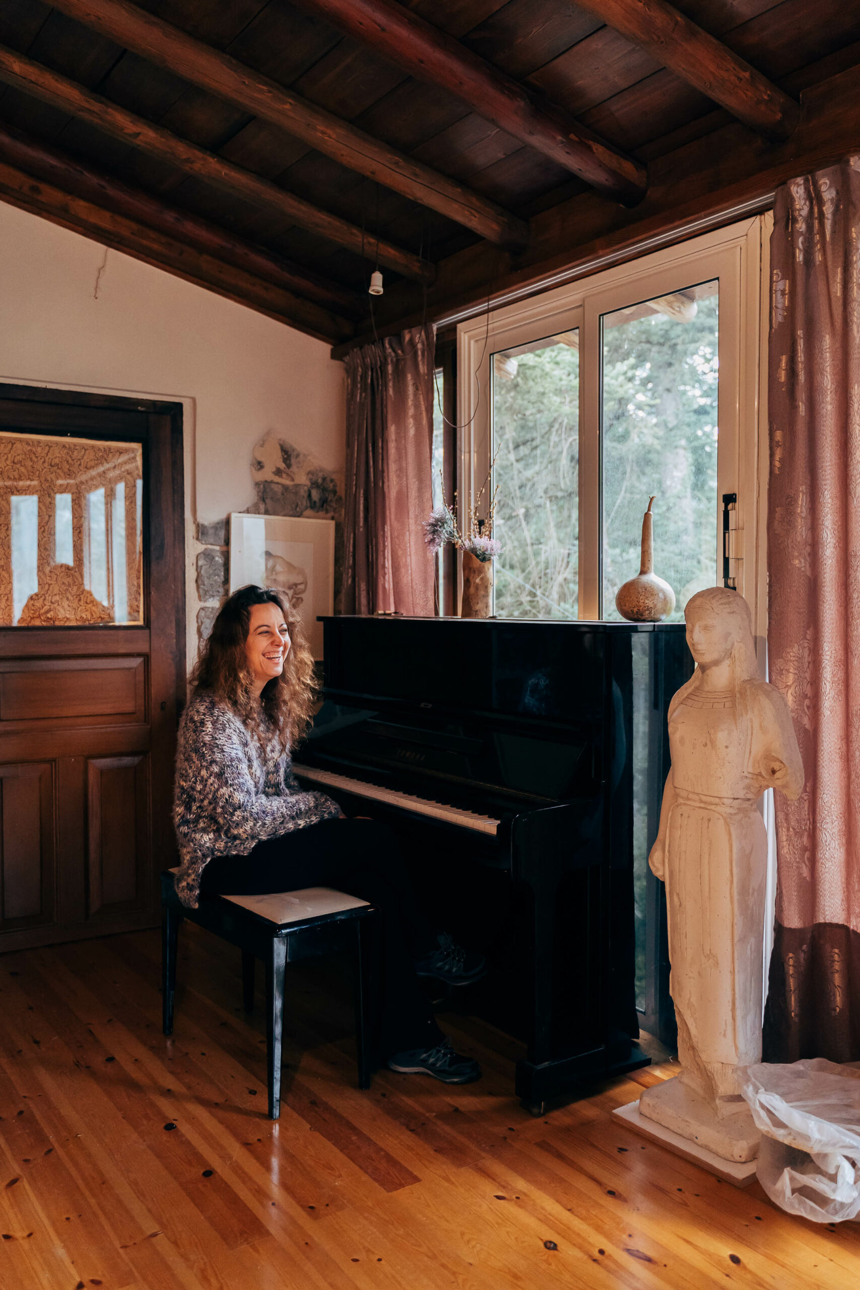 Φιλόξενη και χαμογελαστή, μας προσκάλεσε για ένα ζεστό τσάι, που είχε η ίδια μαζέψει από το βουνό το καλοκαίρι. «Η επαφή με τη φύση με γαληνεύει και με βοηθάει να βρίσκομαι στο κέντρο μου. Αυτή η σύνδεση μόνο θετική επίδραση έχει, μου δίνει έμπνευση και δύναμη στη δουλειά και τη ζωή μου γενικότερα».
