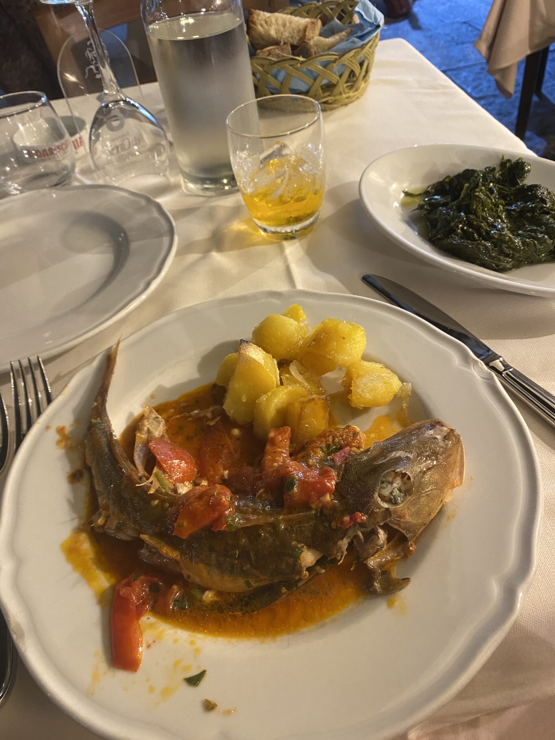 Τελευταίο βράδυ, για να με ταχταρίσω, ντύθηκα με τα καλά μου και μου έκανα το τραπέζι στο εστιατόριο του Belvedere Excelsior. Μπαίνοντας στο λόμπι ακούω «Γεωργία, εσύ;» στα ελληνικά. Ο υπεύθυνος του ιστορικού ξενοδοχείου, ονόματι Αλέξανδρος, Ελληνοϊταλός αρχιτέκτονας με καταγωγή από την Ολυμπία, μου εξήγησε πως οι Έλληνες σπανίζουν στο νησί: έτσι, με τίμησε με μια πρώτης τάξεως ξενάγηση, τόσο στο κτίριο όσο και στα στενά της νυχτερινής Ίσκια. Οι γνώσεις του στην ιστορία του νησιού και την ιταλική ποίηση ήταν τόσο συγκινητικές όσο και η ανάγκη του να επικοινωνήσει στη μητρική μας γλώσσα. Συνιστώ ανεπιφύλακτα, αν ποτέ επισκεφθείτε την Ίσκια, να αναζητήσετε αυτόν τον ενδιαφέροντα Έλληνα της διασποράς με τις ωραίες ιστορίες».