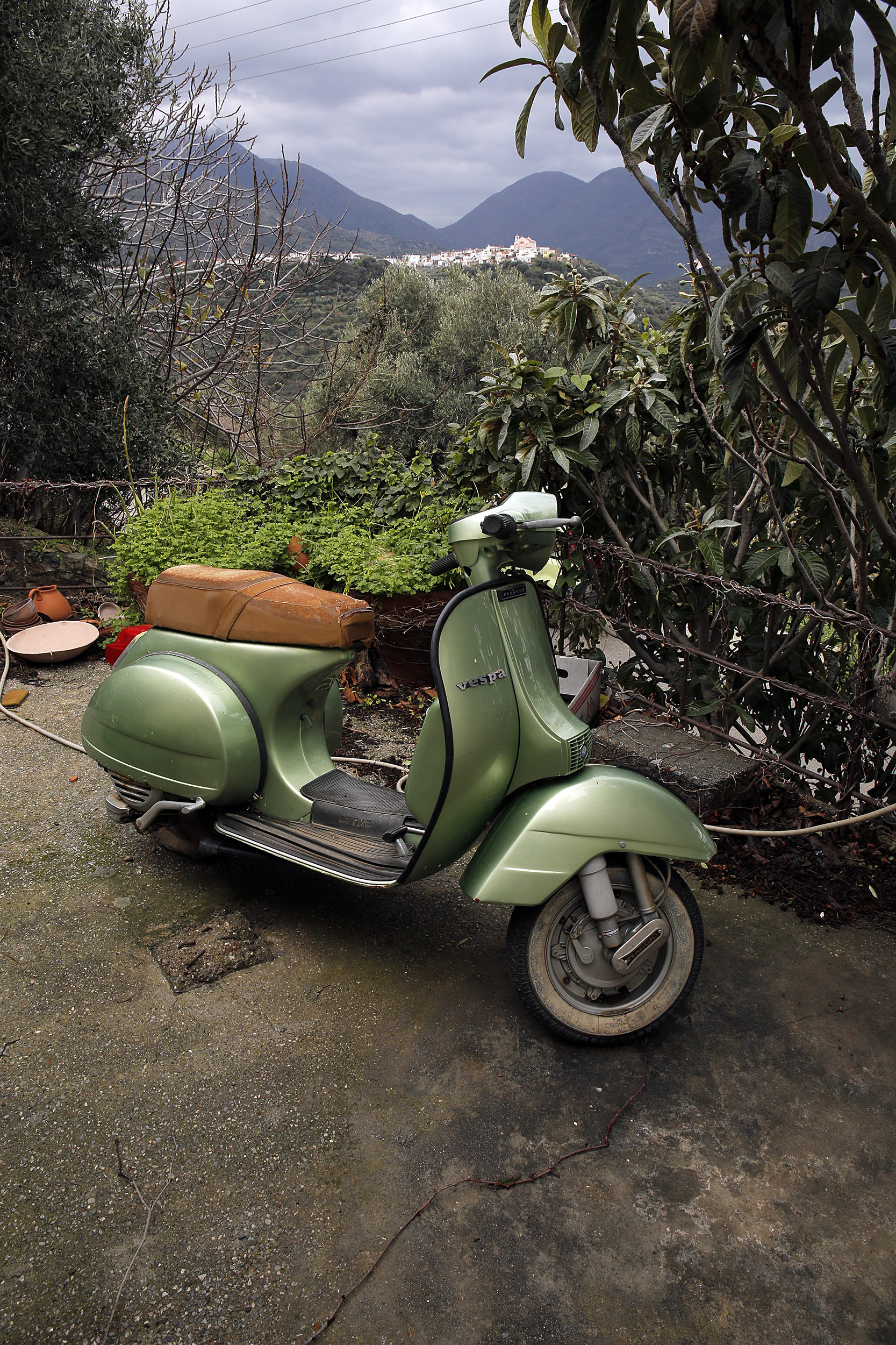 Η πινακίδα του εργαστηρίου στην ανατολική είσοδο της Μυρσίνης, δίνει την επιλογή να αφήσει κάποιος το αυτοκίνητο και να περπατήσει λίγα μέτρα μέσα στο χωριό, μέχρι τις σκάλες που οδηγούν στο εργαστήριο του Νίκου Μακρυνάκη. Ψυχή δε φαίνεται πουθενά. Κομμάτια κεραμικά βρίσκονται σε κάθε γωνιά του βλέμματος, ένας αυτοσχέδιος κυλινδρικός, μεταλλικός φούρνος ξεκουράζεται στην άκρη της αυλής, μια πράσινη Vespa, ταιριάζει με τα χρώματα και τα γήινα υλικά τριγύρω και μια καλοδιατηρημένη εβδομηντάχρονη μοτοσυκλέτα BMW στέκει προφυλαγμένη από τον καιρό ανάμεσα σε πάγκους με κεραμικά κάτω από το στέγαστρο.