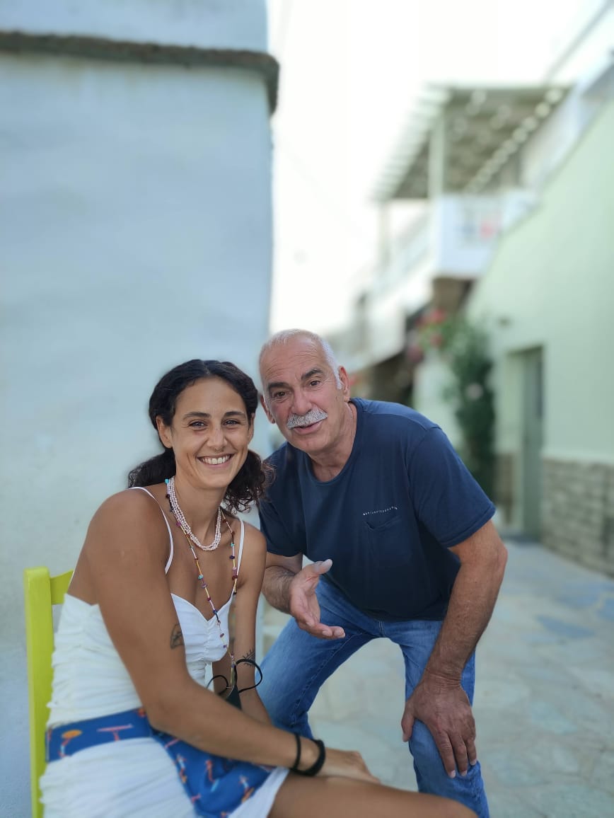 «Στην Τήνο ερχόμασταν από μικρά παιδιά, γιατί οι γονείς μας είχαν αγοράσει σπίτι εδώ. Όταν κάποια στιγμή μετακόμισαν μόνιμα, εγώ τότε σπούδαζα στο εξωτερικό κι έπεσε μία ιδέα από τον πατέρα μου ότι θα ήταν πολύ ωραίο να είχαμε ένα καφενείο. Τότε, τυχαία, σε μία βραδινή βόλτα στον Τριαντάρο, βρήκαμε τον χώρο όπου ήταν παλιά το καφενείο του χωριού. Ένα γκρεμισμένο κτήριο, που ακόμη και οι ίδιοι οι ντόπιοι μάς έλεγαν με αγάπη να μην το προχωρήσουμε γιατί θα καταστραφούμε, αφού δεν πατάει κανείς στα χωριά της Τήνου».