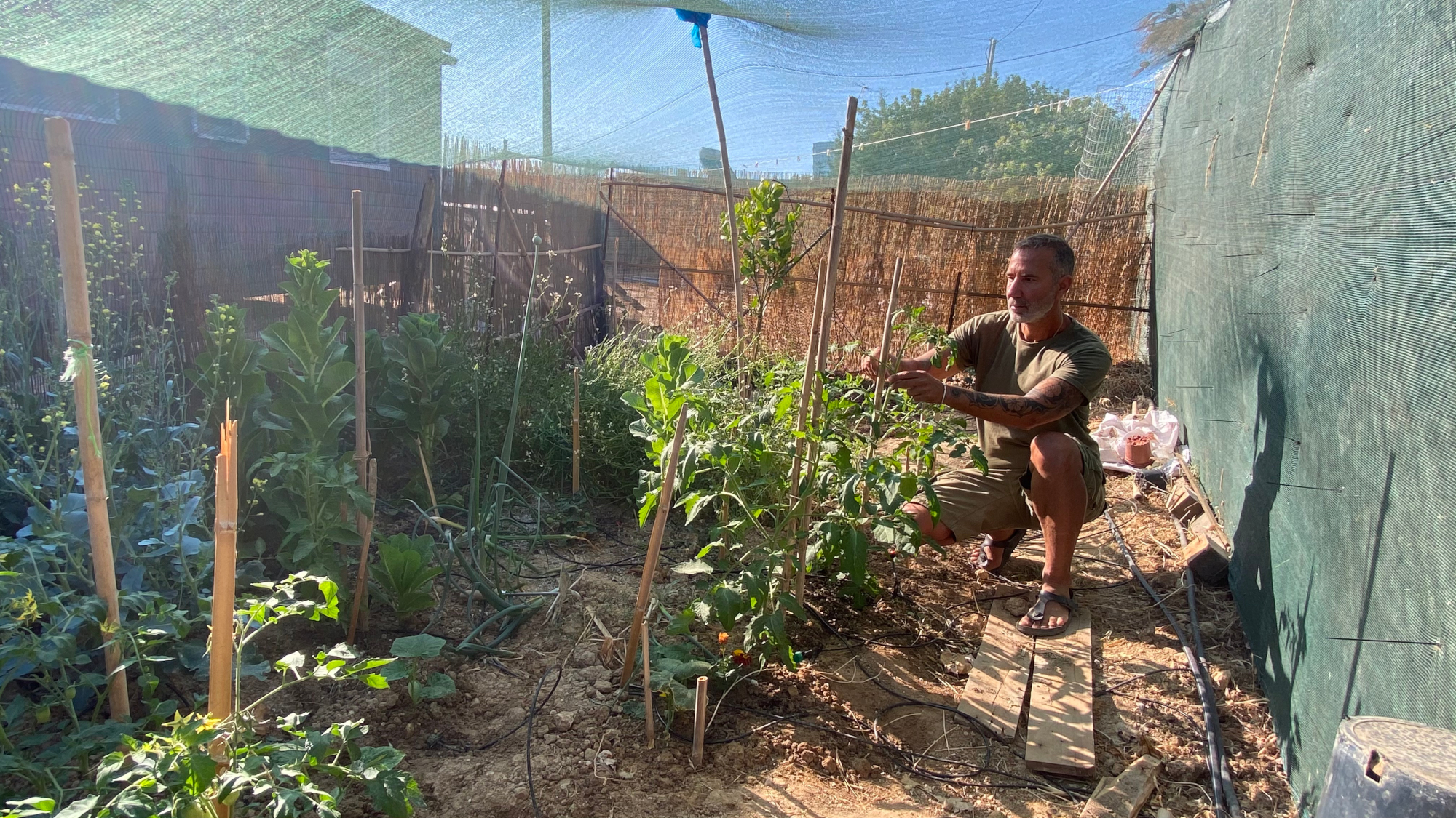 Ο μακιγιέρ το έχει μεταμορφώσει σε έναν χώρο θετικής ενέργειας και αγάπης που δίνεται απλόχερα. Χρησιμοποιώντας την αισθητική και το καλό του γούστο, κυριολεκτικά του έδωσε νέα πνοή, σεβόμενος απόλυτα το περιβάλλον και εντάσσοντάς το μέσα σε αυτό. «Έχω ένα μικρό μποστανάκι» μου λέει όταν τον ρωτάω αν καλλιεργεί κάτι. Από αυτό το μποστάνι παίρνει καθημερινά τα λαχανικά που θα χρησιμοποιήσει στο τραπέζι του. Και αυτό κατά τον ίδιο είναι ευτυχία.