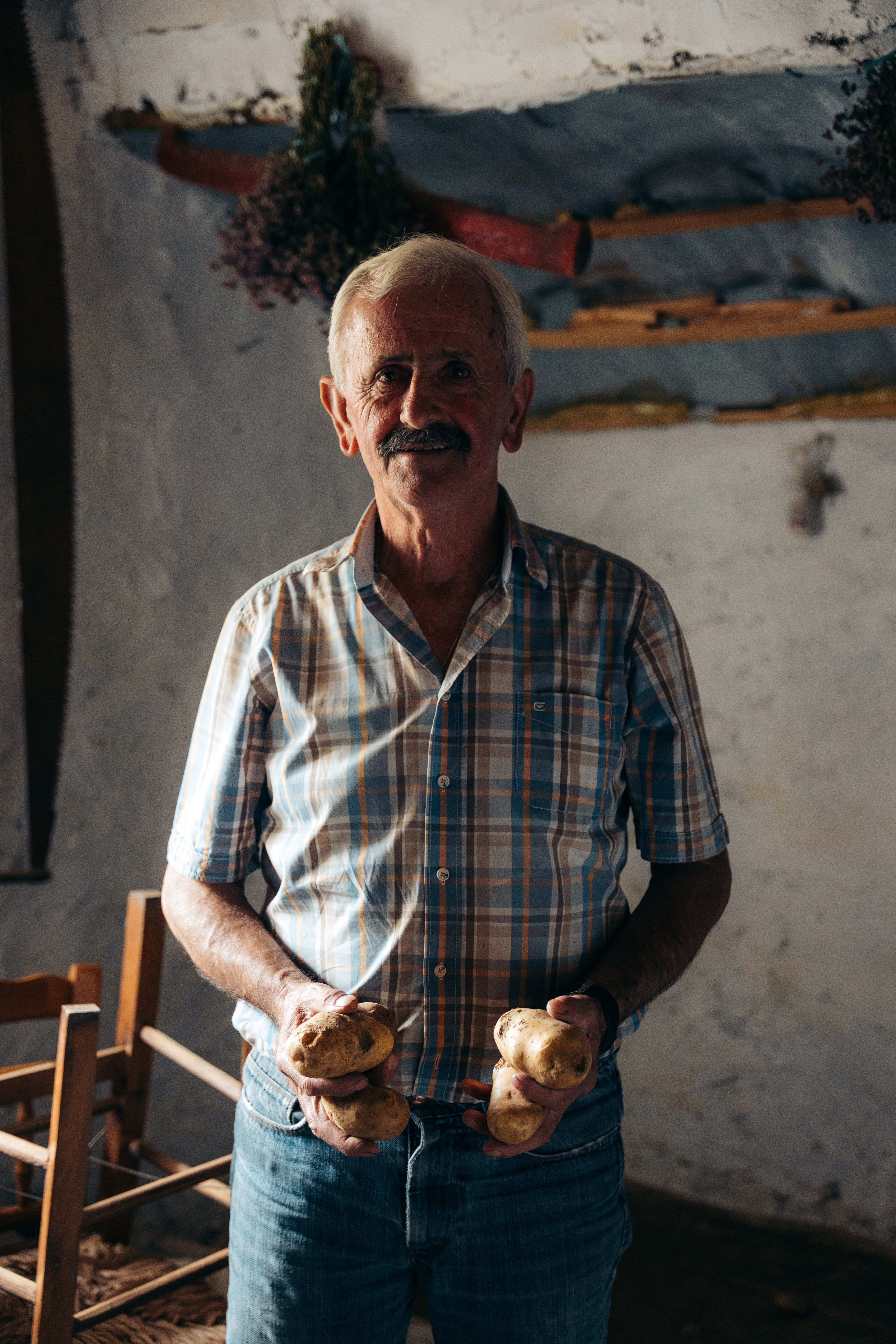 Μόλις είχε φτάσει και ο σύζυγος της κυρίας Σοφίας, ο Ηρακλής. Με την ίδια ζεστασιά, μας καλωσόρισε και προσφέρθηκε να μας δείξει την αποθήκη τους. Μπαίνοντας στον μικρό χώρο, μείναμε άφωνοι. Ράφια γεμάτα με πατάτες, κρεμμύδια, και άλλα προϊόντα. Σε μια γωνιά, ένας σωρός από καρύδια περίμενε υπομονετικά να καθαριστεί. «Τα καρύδια είναι περιζήτητα», μας εξήγησε ο κύριος Ηρακλής με καμάρι. «Κάθε χρόνο, μαζεύουμε αρκετά για να έχουμε όλο το χειμώνα, αλλά και να μοιράσουμε στα παιδιά και τα εγγόνια».