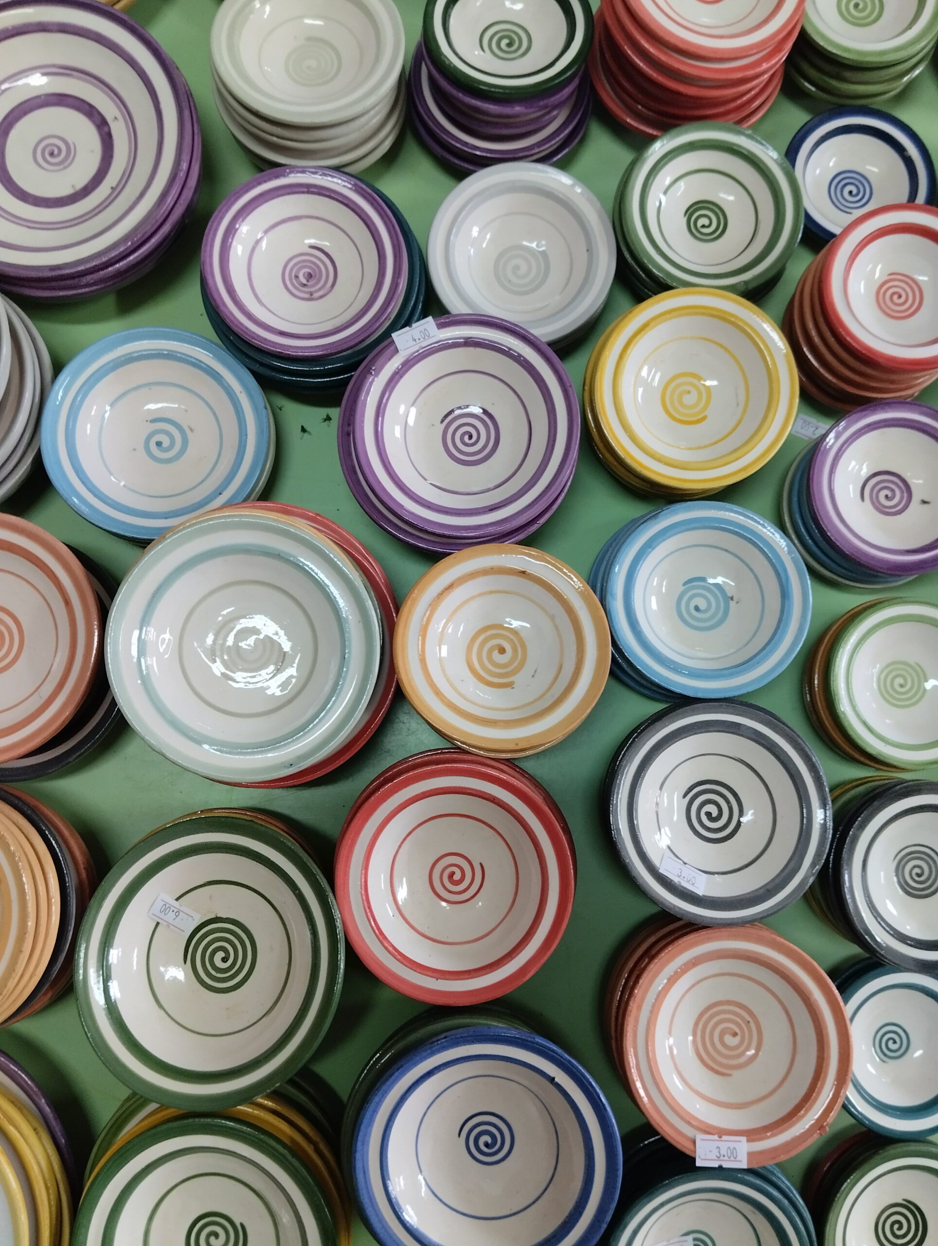 Μετά από λίγο, ο κύριος Αντώνης επιστρέφει στον τροχό του και, ενώ συνεχίζει για λίγο ένα μισοτελειωμένο έργο που είχε σκεπάσει πριν από λίγη ώρα, εγώ βρίσκω την ευκαιρία να εξερευνήσω τις γωνιές του μικρού του εργαστηρίου. Πήλινα μαγειρικά σκεύη σε διάφορα μεγέθη, ζωγραφισμένες κούπες κάθε στυλ, θυμιατά, αλλά και μικρά πολύχρωμα πήλινα σκεύη, μικρά και μεγάλα, γεμίζουν τα ράφια στο εργαστήριο του κυρίου Αντώνη.
