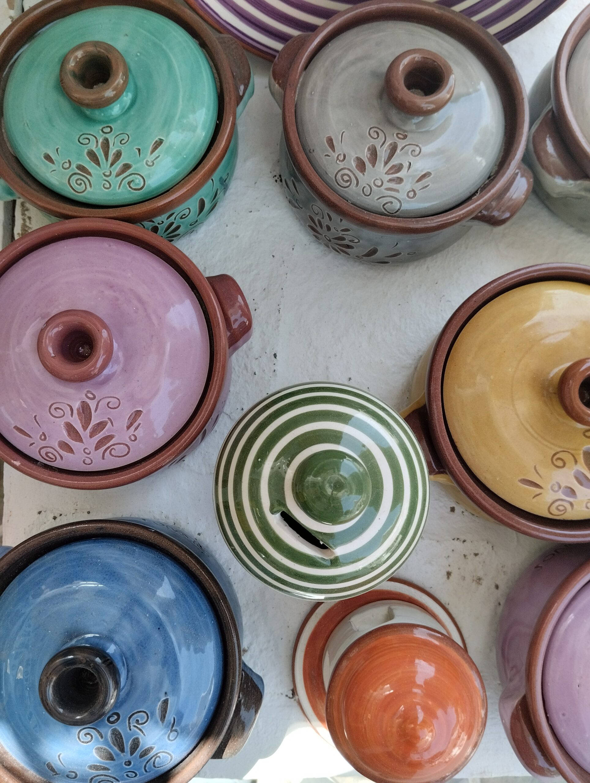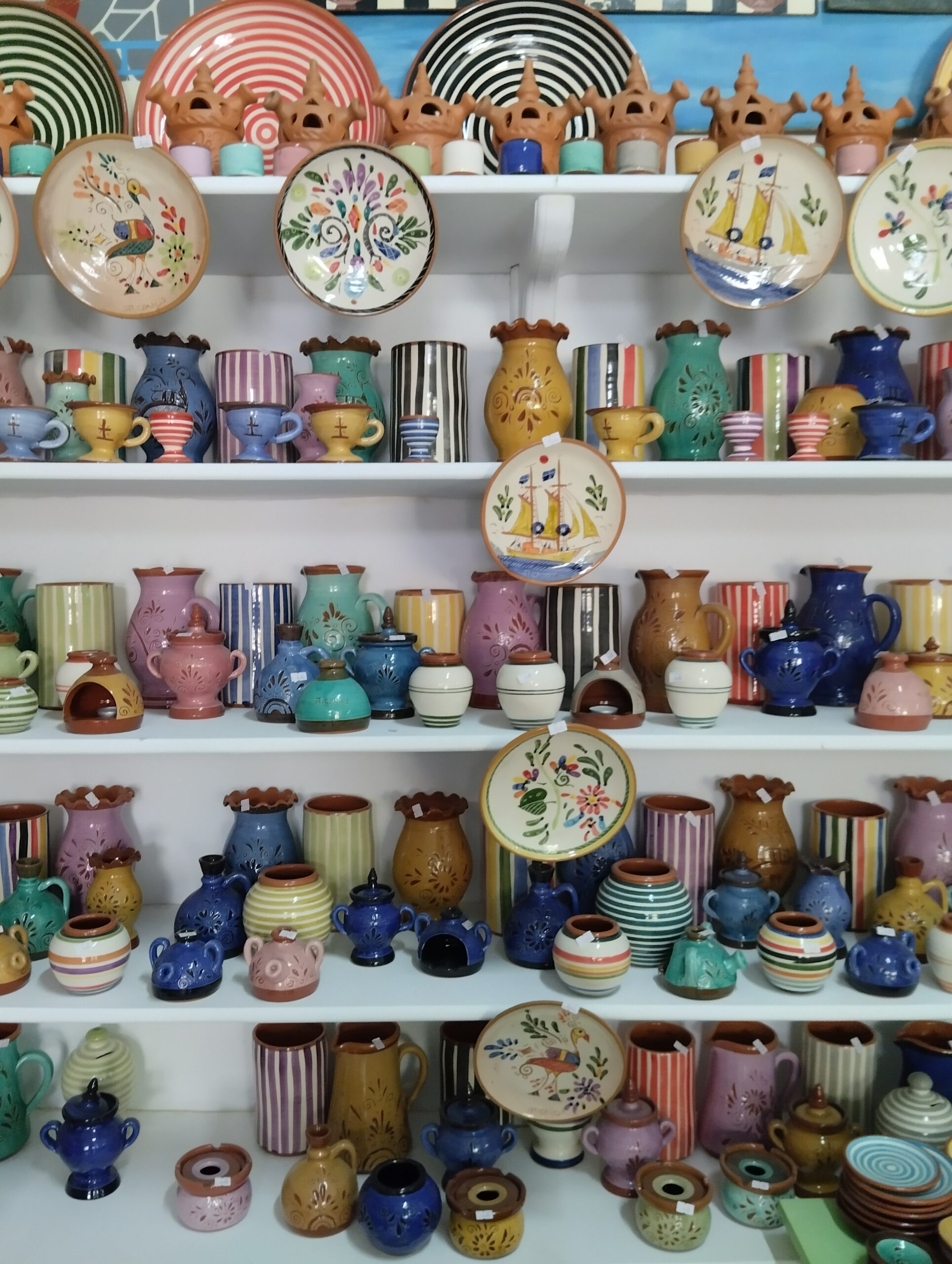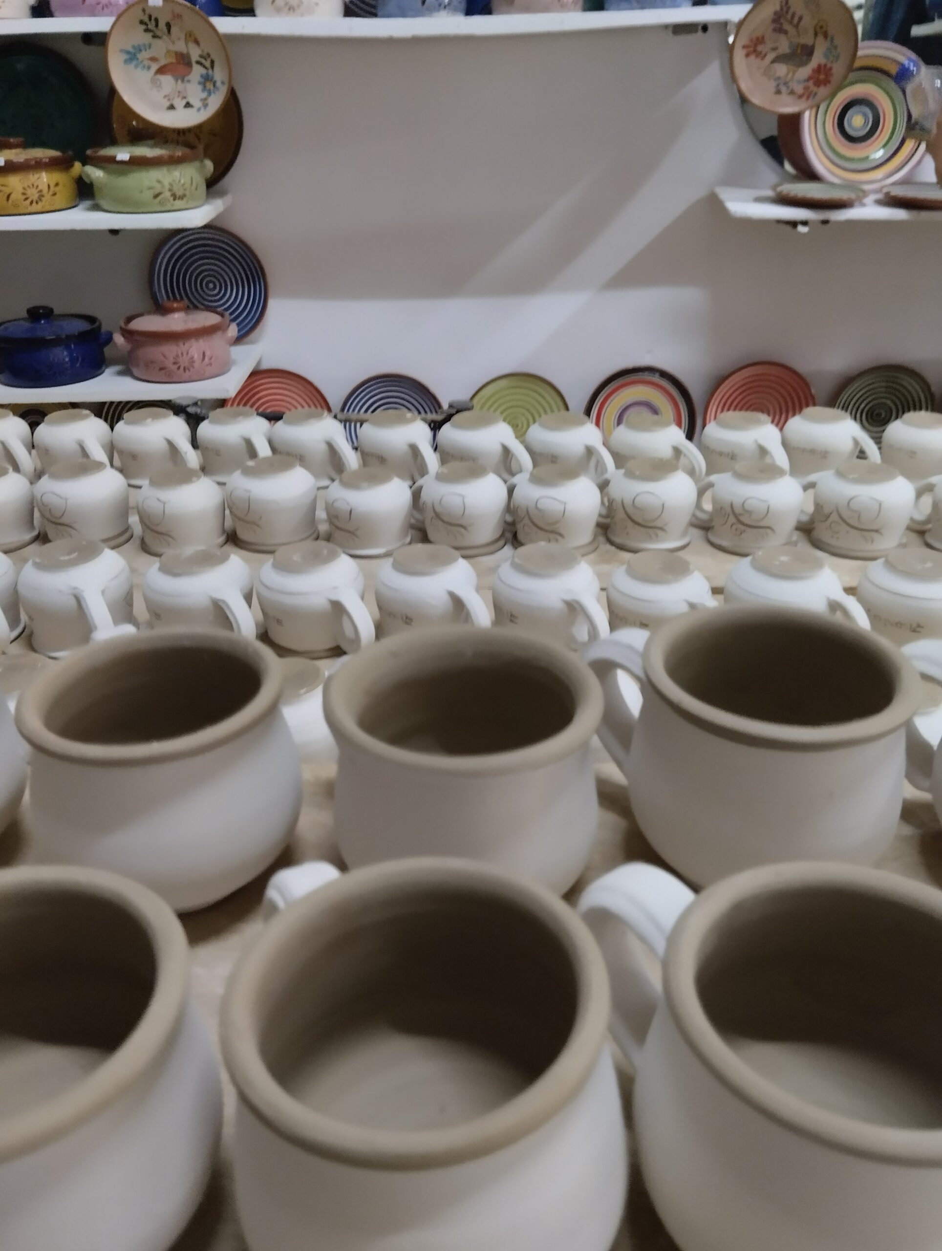 Μετά από λίγο, ο κύριος Αντώνης επιστρέφει στον τροχό του και, ενώ συνεχίζει για λίγο ένα μισοτελειωμένο έργο που είχε σκεπάσει πριν από λίγη ώρα, εγώ βρίσκω την ευκαιρία να εξερευνήσω τις γωνιές του μικρού του εργαστηρίου. Πήλινα μαγειρικά σκεύη σε διάφορα μεγέθη, ζωγραφισμένες κούπες κάθε στυλ, θυμιατά, αλλά και μικρά πολύχρωμα πήλινα σκεύη, μικρά και μεγάλα, γεμίζουν τα ράφια στο εργαστήριο του κυρίου Αντώνη.