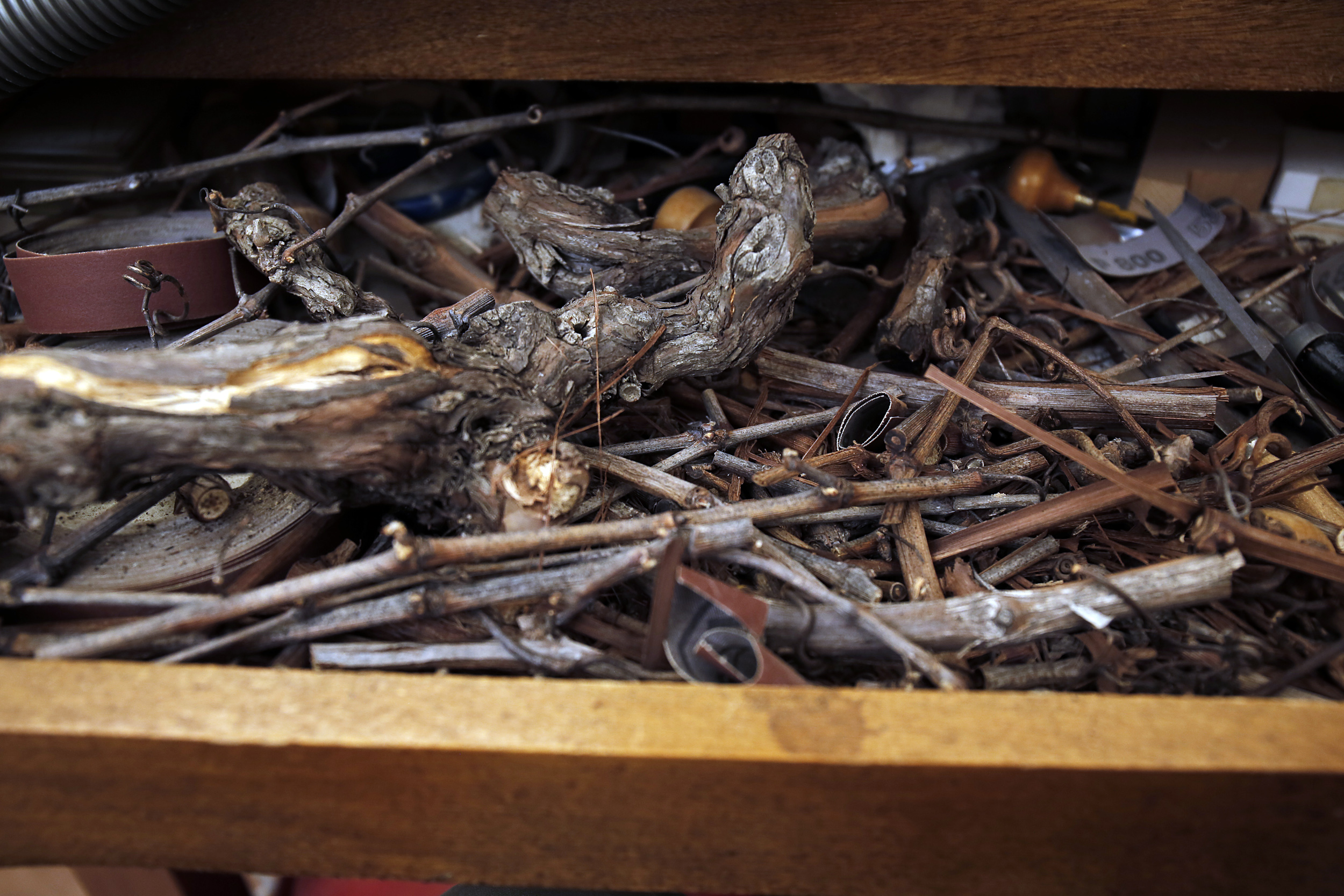 Ρίχνω μία ματιά στο εργαστήριο. Εκεί, βρίσκονται δεκάδες διαφορετικά μικρά εργαλεία, έχοντας το καθένα τη δική του χρήση και βοηθώντας στην επίτευξη του τελικού αποτελέσματος. Αφήνουμε τον Χρήστο να συνεχίσει την προσπάθειά του, δημιουργώντας με βάση το ίδιο το αμπέλι, αυτό που από μικρός έχει στην καρδιά του, όπως εξάλλου καθένας που μεγάλωσε σε αυτό το μαγικό μέρος, στην οινική διαδρομή της Νεμέας.