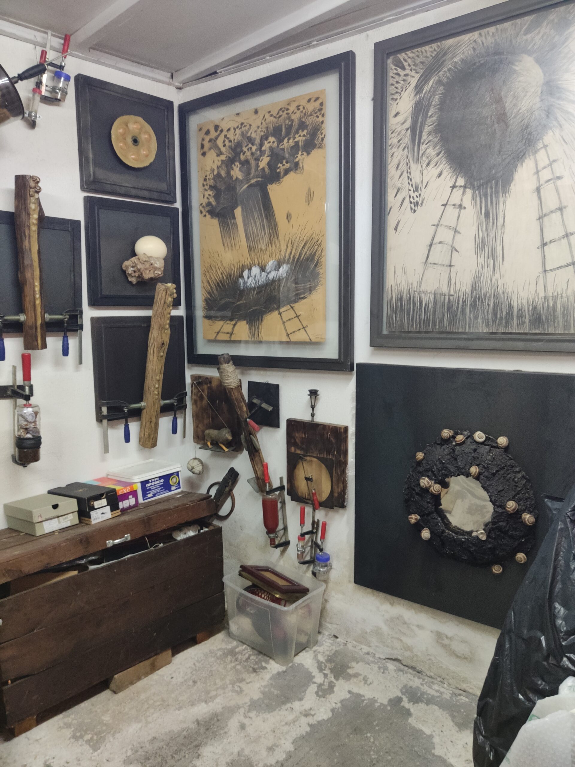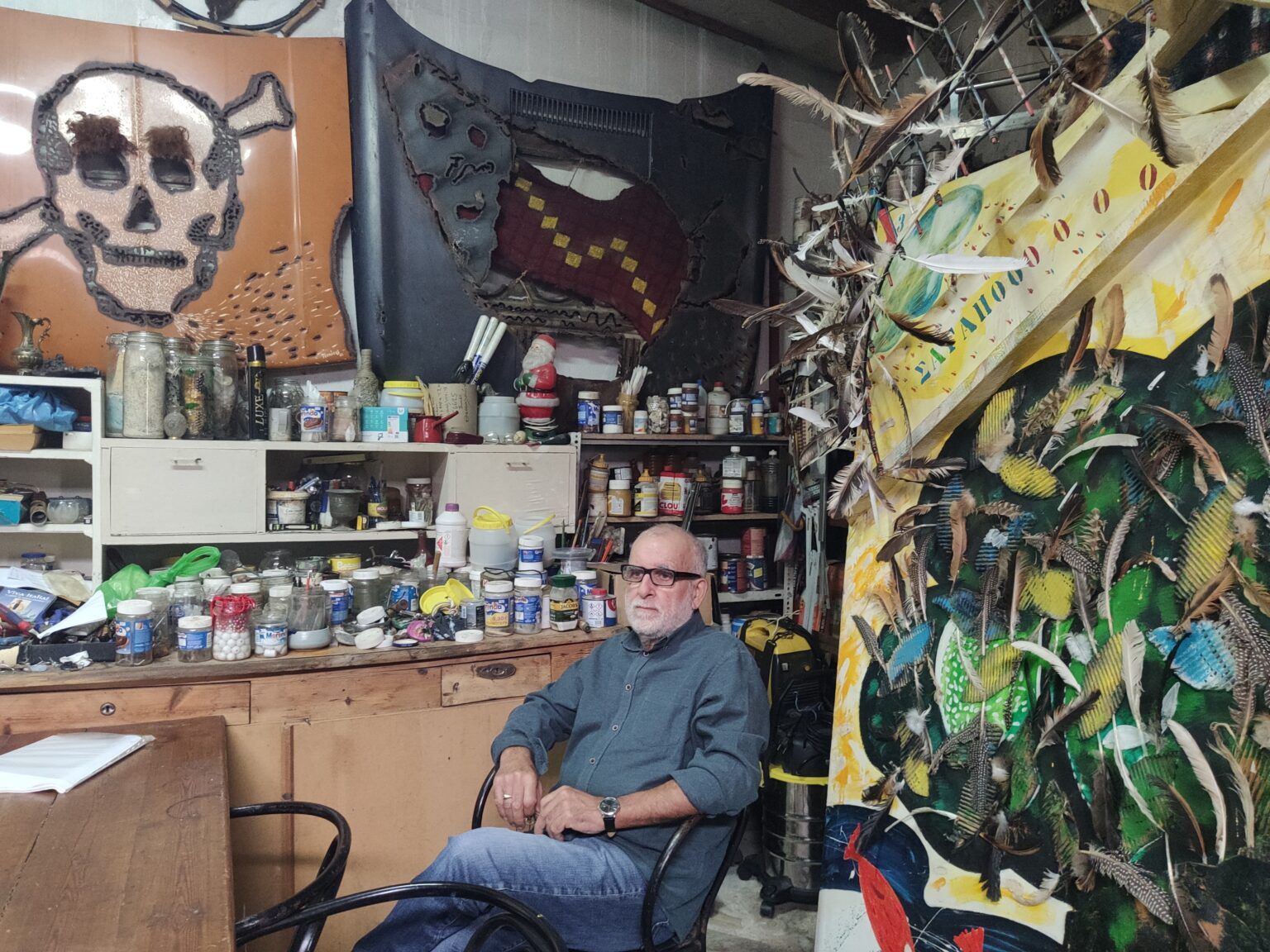 Ο ίδιος συνεχίζει να δουλεύει με τα χέρια του και ως εικαστικός και ως παραγωγός του δικού του κρασιού. Γι’ αυτό, αν μας βγάλει ο δρόμος στο εργαστήρι του στο Αχλαδοχώρι, που είναι πάντα ανοιχτό στο κοινό, μας περιμένει όχι μόνο για να μας ξεναγήσει στους χώρους και στα έργα του, αλλά και για να μας κεράσει «το εξαίρετο κρασί μου, το οποίο είναι πολύ καλύτερο από την τέχνη μου».