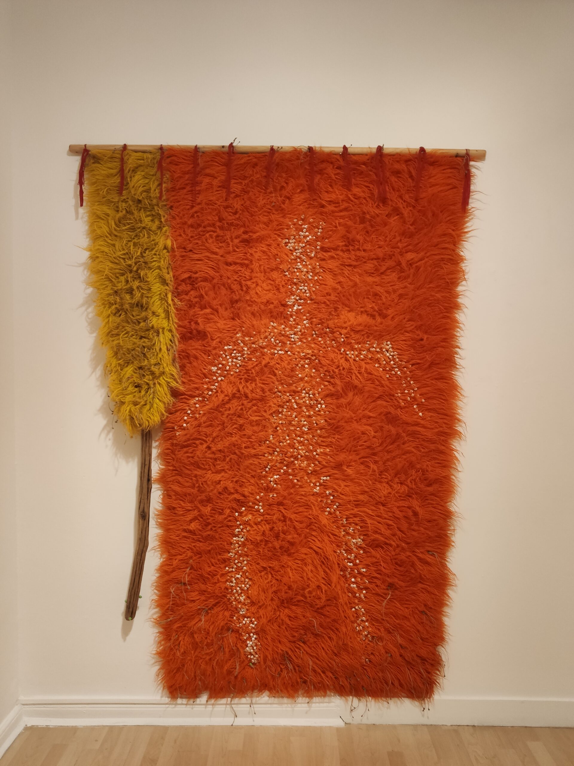 Αρκεί όμως να επισκεφθούμε το ατελιέ του Γιώργου Τσακίρη στο όρος Πάικο για να δούμε συγκεντρωμένα πολλά δείγματα από αυτό το είδος οικιακής χρήσης προς εξαφάνιση. Τα τελευταία χρόνια ο πολυβραβευμένος εικαστικός διασώζει βελέντζες, παρεμβαίνει σε αυτές και τους δίνει την ευκαιρία για μια δεύτερη ζωή, ως έργα τέχνης. Ένα από αυτά, που εκτίθεται στη γκαλερί Lofos Art Project, στη νέα ομαδική έκθεση για τη σύγχρονη υφαντική τέχνη «Μίτοι για την εποχή μας», έγινε η αφορμή για να μας αφηγηθεί την ιστορία του.