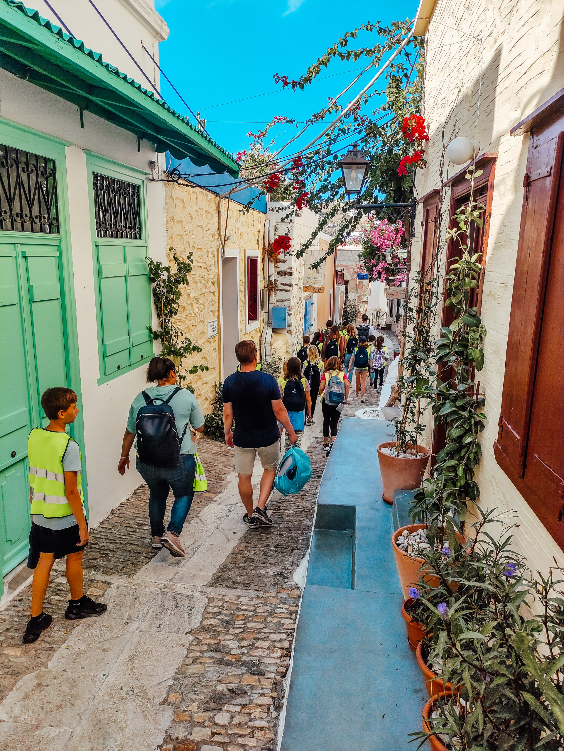 Στην πλατεία Μιαούλη της Ερμούπολης τα περιστέρια κάνουν χαμηλές πτήσεις. Καθισμένοι στα καφέ, τουρίστες και ντόπιοι στρέφουν το πρόσωπο προς τον ανοιξιάτικο ήλιο ζηλεύοντας ενδόμυχα την ελευθερία των πουλιών. Η γυναίκα που κάθεται απέναντί μου δεν έχει κάτι να ζηλέψει. Έχει καταφέρει αυτό που μοιάζει άπιαστο όνειρο για πολλούς: να ταξιδεύει διαρκώς, κάνοντας μια δουλειά που την εκφράζει απόλυτα. Μαζί της ταξιδεύουν και οι τρεις μικρές κόρες της, που εκπαιδεύονται με σύγχρονα συστήματα διδασκαλίας έχοντας την ευκαιρία να γίνουν πολίτες του κόσμου και να διευρύνουν τους ορίζοντές τους.