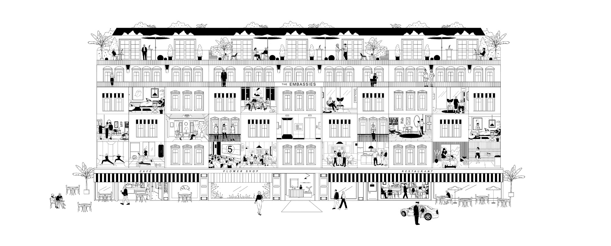 Το “The Embassies For Good Living” προσδίδει μια θετική αύρα στην έννοια του να μεγαλώνεις και δίνει τη δυνατότητα στους συνταξιούχους να ζουν με ομοίους τους και άλλους, έχοντας όλη την υποστήριξη του προσωπικού της πλατφόρμας στο κτήριο. H χορηγία της μάρκας πολυτελών αυτοκινήτων Porche στο όλο εγχείρημα μας δίνει να καταλάβουμε ότι έχουμε να κάνουμε με ένα glamorous και premium προϊόν που άξονας του κόνσεπτ του είναι η καλή ζωή, είτε αφορά το design του κτηρίου, είτε τη γαστρονομία, είτε τις μετακινήσεις σε διαφορετικά “embassies” ανά τον κόσμο. Αλλά ας αφήσουμε τον ιδρυτή του start-up Γιαν να μας εξηγήσει το πρότζεκτ του.