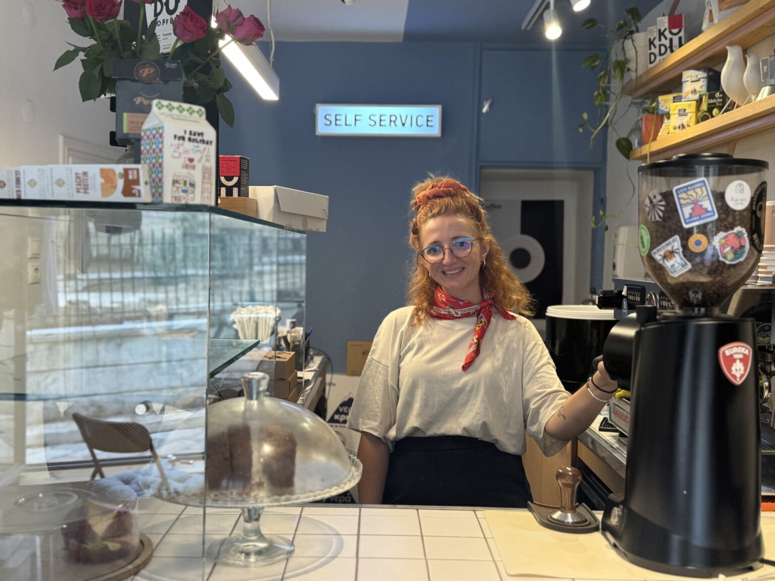 Χαμογελαστή, με κόκκινα μαλλιά και μεγάλα γυαλιά, η Χριστίνα σε υποδέχεται λες και γνωρίζεστε χρόνια. Έχει καταφέρει, σε ελάχιστα τετραγωνικά, να δημιουργήσει έναν χώρο με ψυχή. Όμορφες γωνιές για να απολαύσεις τον καφέ σου στο εσωτερικό, και απέναντι, στην είσοδο του κήπου της εκκλησίας, τρία ή τέσσερα ξύλινα τραπεζάκια, όπου μπορείς να καθίσεις και να αφουγκραστείς τη ζωή της γειτονιάς.