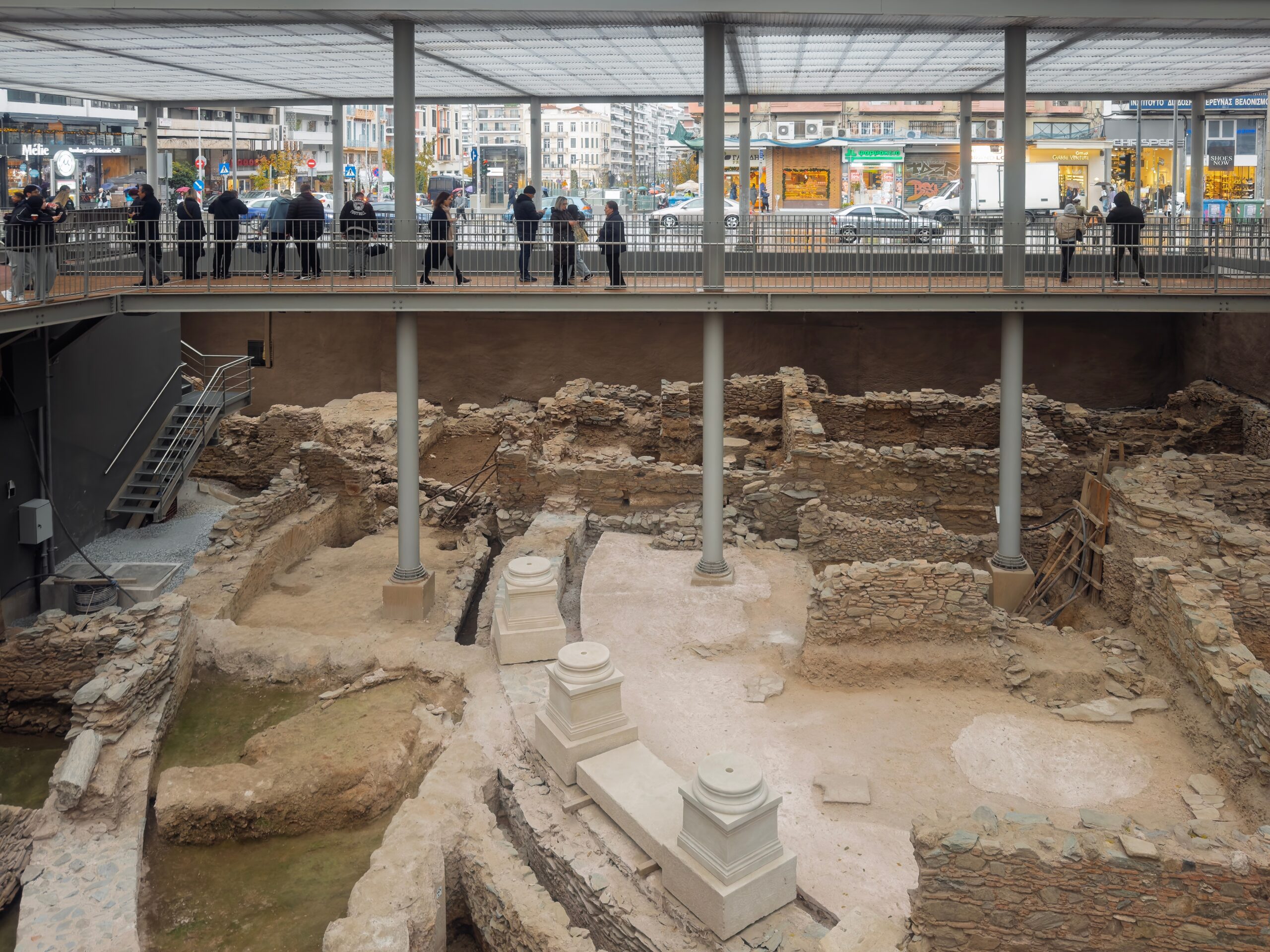 Αφήνοντας πίσω τον Άγιο Δημήτριο και αναζητώντας τα ίχνη της αρχαίας Θεσσαλονίκης, μπορείτε να επισκεφθείτε το Μουσείο της Αρχαίας Ρωμαϊκής Αγοράς της πόλης λίγα μέτρα πιο πάνω από την πλατεία Αριστοτέλους, αλλά αρκετά κάτω από την στάθμη της ασφάλτου και της ιστορίας. Μπορεί να μην είναι ό,τι πιο εντυπωσιακό σήμερα, αλλά το μουσείο πετυχαίνει να δώσει μια ρεαλιστική γεύση της καθημερινότητας στην αρχαία Θεσσαλονίκη, ενώ συχνά πυκνά φιλοξενεί και αρκετές μικρές εκθέσεις στις στοές του μουσείου. Το ενδιαφέρον είναι ότι, κατά την διάρκεια των ανασκαφών στον χώρο, αποκαλύφθηκε μία παλαιοχριστιανική τοιχογραφία, που παρίστανε δύο ανθρώπους σε στάση προσευχής με ένα σταυρό ανάμεσά τους αποδεικνύοντας ότι η αρχαία αγορά της πόλης χρησιμοποιήθηκε σαν τόπος συγκέντρωσης των χριστιανών της πόλης κατά τους όψιμους ρωμαϊκούς χρόνους και λύνοντας για πάντα τον τοπογραφικό γρίφο για το πού βρίσκονταν η αρχαία αγορά της Θεσσαλονίκης.