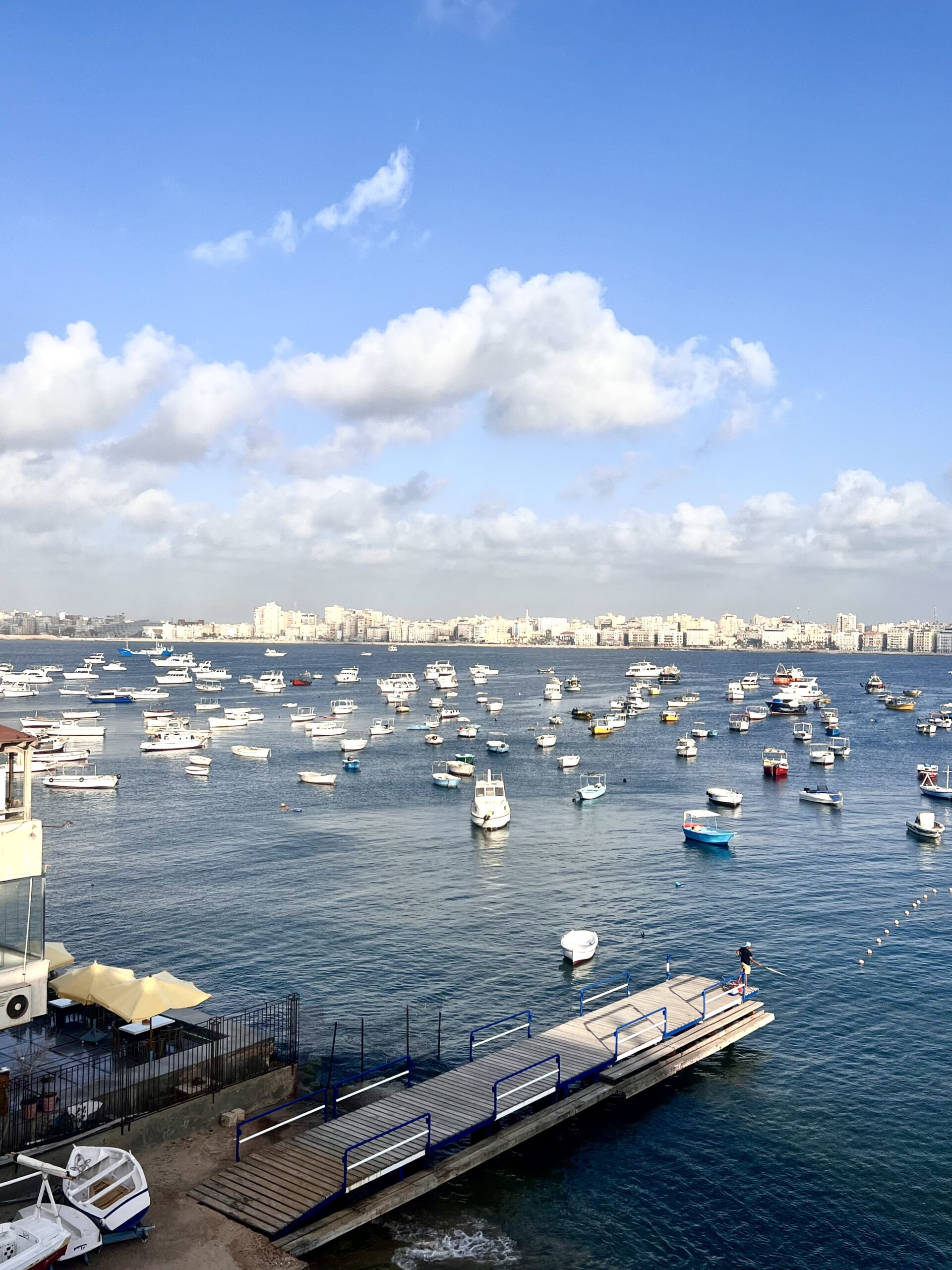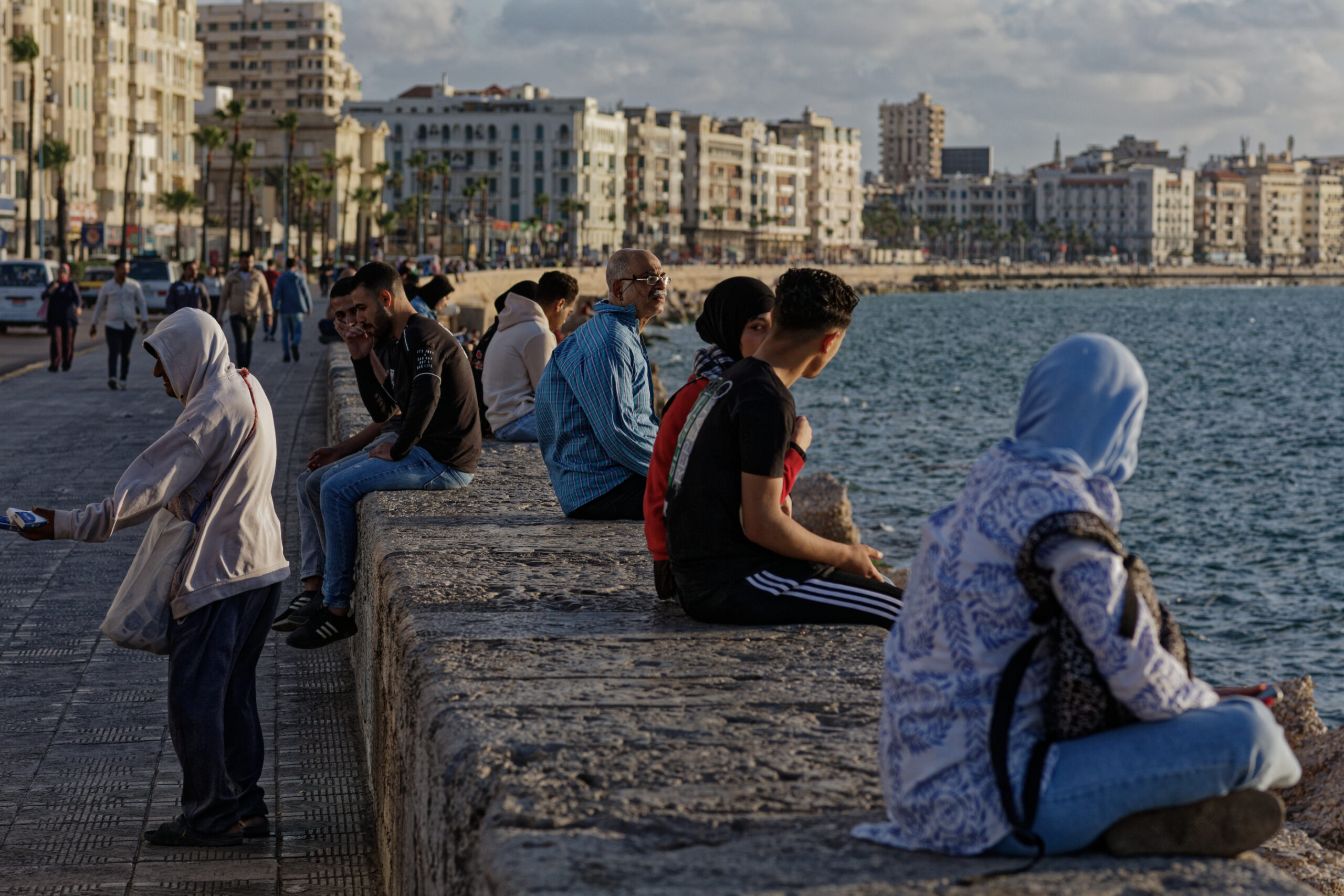 Όλα αυτά συμβαίνουν περιμετρικά της Αλεξανδρινής Κορνίς, δηλαδή της παραλιακής οδού που διασχίζει σαν φλέβα όλο το σώμα της πόλης, αγκαλιάζοντας τη σαν χάδι, σε μια έκταση πολλών χιλιομέτρων που ξεκινά από τον μόλο και φτάνει ως την περιοχή με τα καζίνο. Εξού και ότι η Αλεξάνδρεια είναι διαφορετική, ανάλογα με την ώρα της ημέρας: το πρωί η παραλία γεμίζει από ψαράδες και το απόγευμα από ζευγαράκια που ζουν εκεί τις δικές τους ιστορίες, που τους κάνουν να ξεχωρίζουν από τους υπόλοιπους Αιγύπτιους. Δεν ξέρω, πραγματικά, να έχω συναντήσει πουθενά πιο ευγενείς ανθρώπους που φροντίζουν να χαμογελάνε με την καρδιά τους, κάθε φορά που τους απευθύνεις ένα αμήχανο «Σουκράμ» (ευχαριστώ στα αραβικά) και σπεύδουν να σε βοηθήσουν, ακόμα και αν δεν μιλούν άλλη γλώσσα.