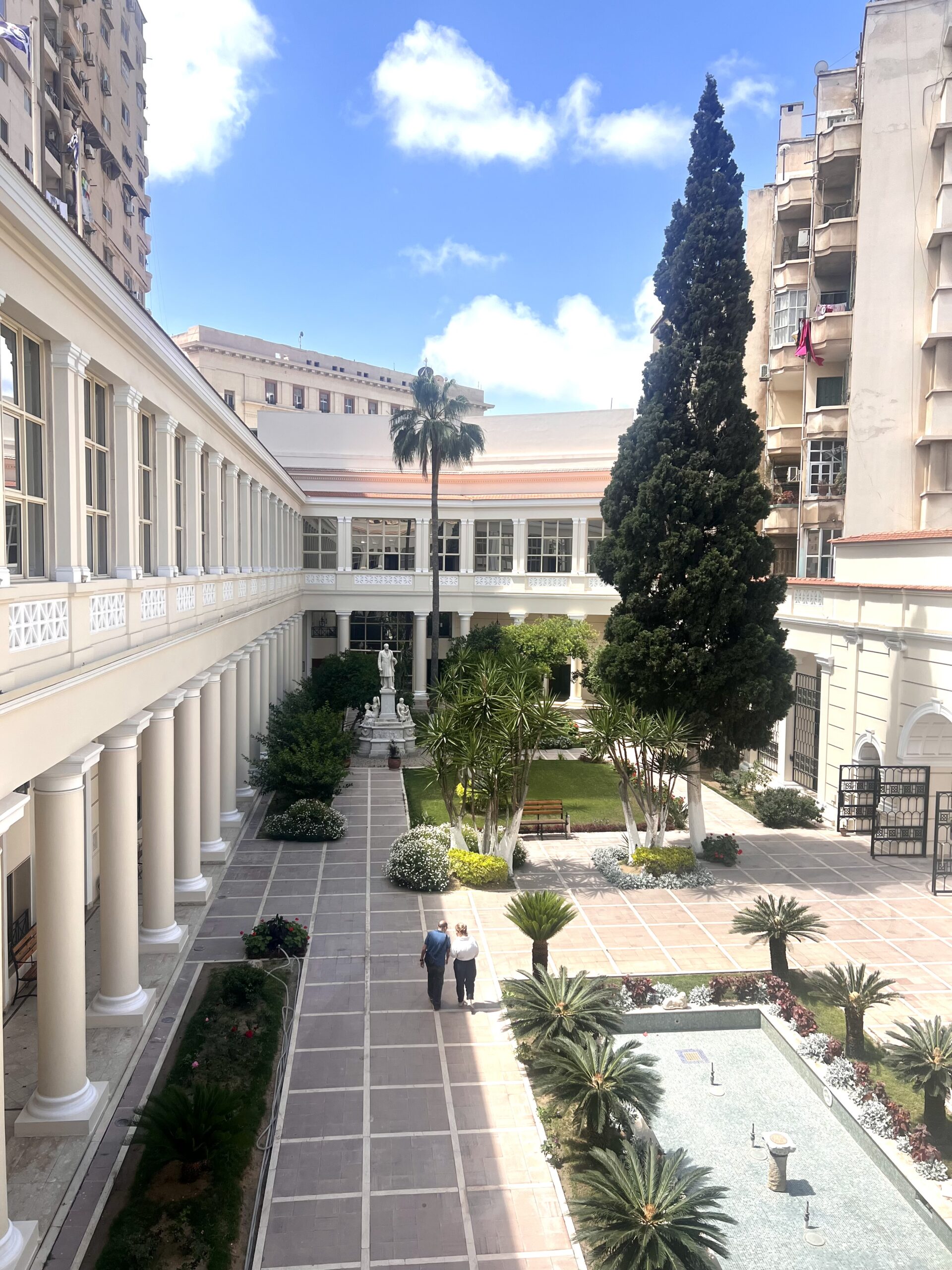 Επόμενη στάση, αφού κάνουμε έναν γύρο σε αυτή την πανέμορφη γειτονιά με τις ελληνικές βίλες η περιοχή με τα κτήρια της Ελληνικής Κοινότητας με το Αβερώφειο Σχολείο και το Γηροκομείο. Αξίζει μια βόλτα με τα πόδια σε όλη αυτή την περιοχή του Σάτμπι αλλά και μια επίσκεψη στο καφέ και το εστιατόριο της ελληνικής κοινότητας, που βρίσκεται ακριβώς απέναντι με θέα όλα αυτά τα εντυπωσιακά κτήρια. Απαραίτητο, στο τέλος αυτής της βόλτας, ένα πέρασμα από τις κατακόμβες του Κομ Ελ Σουκάφα (Kom esch-Schukafa), ένας ατελείωτος κάτω κόσμος-ταξίδι στα βάθη των αιώνων.