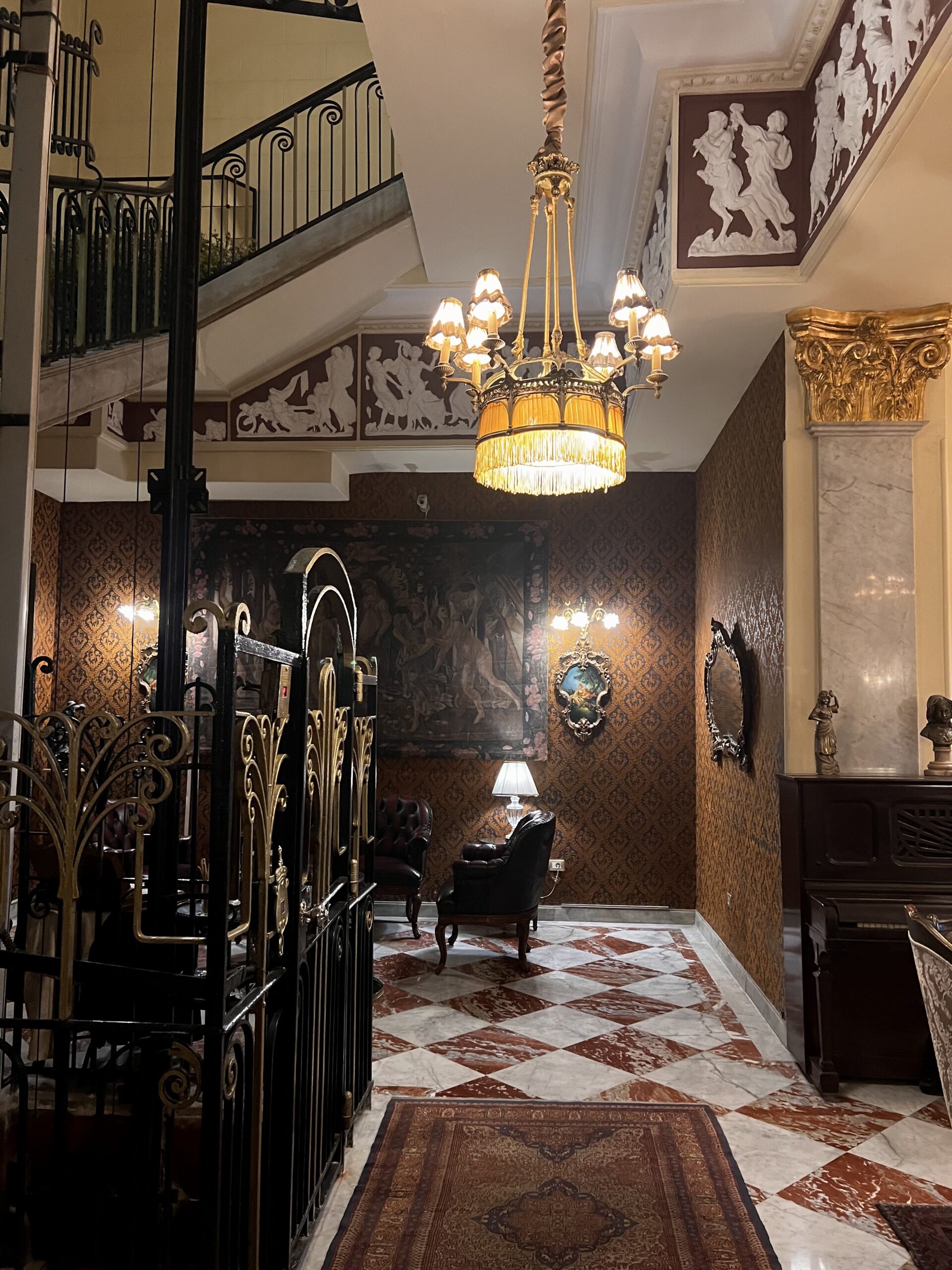 Ευτυχώς, για εμάς, σε αντίθεση με το διάσημο Cecil, στην ακριβώς απέναντι πλευρά της πλατείας, που ανακαινίστηκε πλήρως και φιλοξενεί τους επίσημους επισκέπτες που καταφθάνουν στην πόλη, το Metropole έχει κρατήσει την ίδια, αυθεντική διακόσμηση όπως τότε, με τους παλιούς καθρέφτες, το ασανσέρ με την Αρ Ντεκό αισθητική, τα παλιά ξύλινα πατώματα (που τρίζουν) και το δωμάτιο του Καβάφη να παραμένει ακέραιο, όπως τότε που διατηρούσε ο ποιητής σε αυτό το γραφείο του. Για την ακρίβεια εδώ στεγαζόταν η Εταιρεία Αρδεύσεων, όπου δούλευε ο ποιητής και τον φαντάζεσαι να κάνει τη διαδρομή προς το σπίτι του με τα πόδια ή παίρνοντας το τραμ από τη γειτονική πλατεία Ραμλέχ.