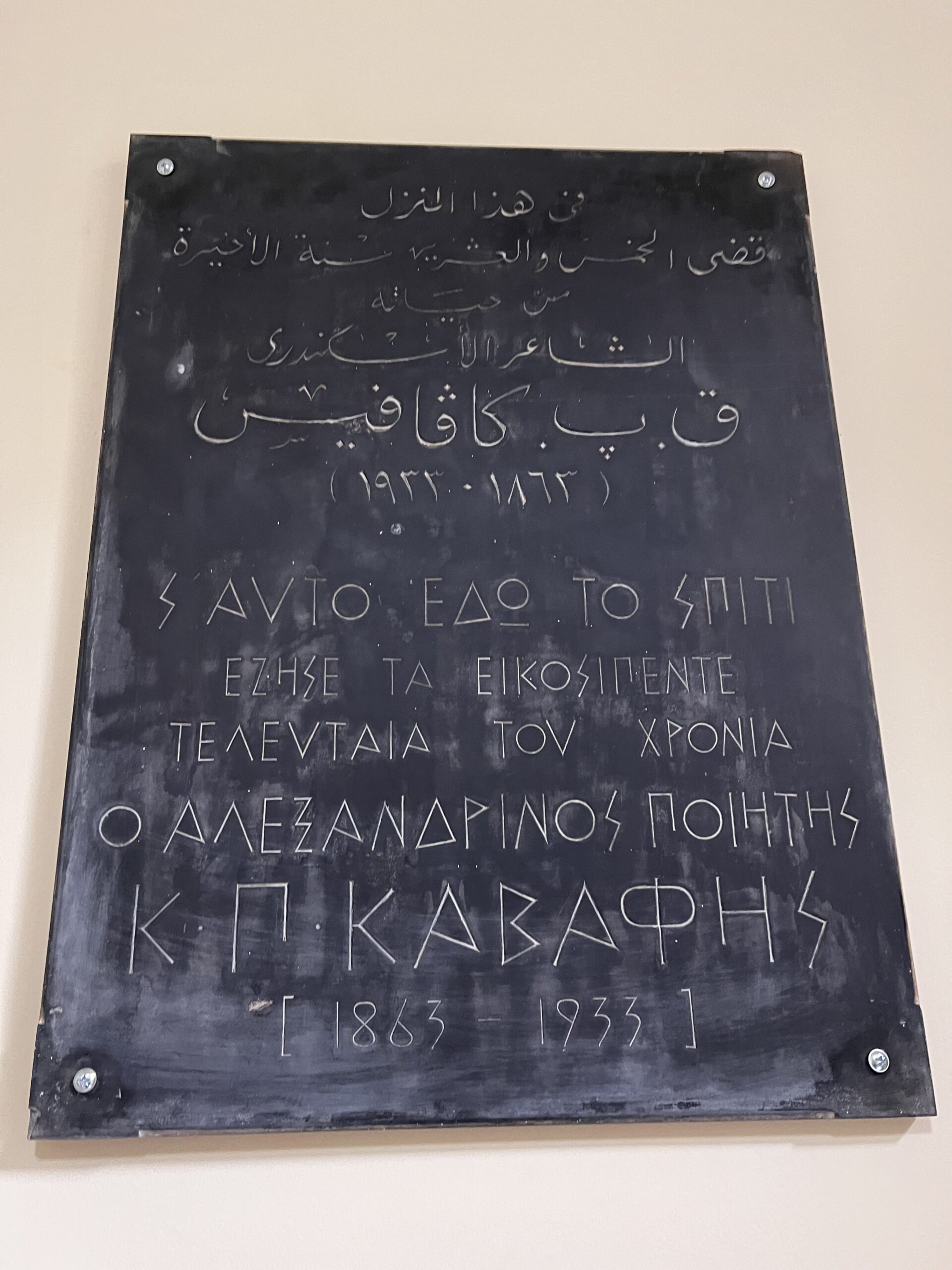 Διασχίζοντας την οδό Λέψιους, που πλέον έχει μετονομαστεί σε C.P. Cavafy, διαπιστώνεις πως κάθε σημείο και μνήμη του ποιητή είναι εκεί: το στενό δρομάκι, τα παλιά κτήρια, οι εικόνες και οι μνήμες. Ανεβαίνεις τα σκαλιά και φτάνεις στην ανακαινισμένη οικία, τα εγκαίνια της οποίας από το Ίδρυμα Ωνάση μας έδωσαν την αφορμή για να κάνουμε αυτό το ταξίδι, και οδηγείσαι στον χώρο όπου υπάρχουν τα αντικείμενα του: σημειωματάρια με τα έξοδα του, ακόμα και για τον τζόγο (!), εμβόλιμες παρατηρήσεις σε βιβλία που διάβαζε, ένα γνήσιο αντίγραφο από τα εμβληματικά γυαλιά του. Από το θρυλικό μπαλκόνι έχουμε τη θέα που ενέπνευσε μερικά από τα πιο εμβληματικά του ποιήματα, ακούμε τους ήχους από τις καμπάνες από την ελληνορθόδοξη εκκλησία ενώ βλέπουμε και το νοσοκομείο, όπου ο ποιητής άφησε την τελευταία του πνοή και που συνόρευε με τους «ναούς της ψυχής», όπως αποκαλούσε ο ίδιος τα πορνεία.