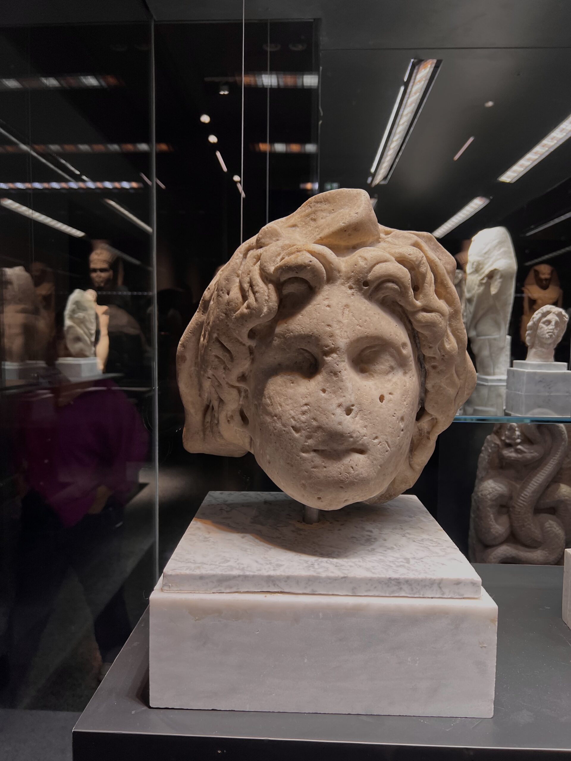 Ερείπια του Σεραπείου, του ονομαστού ελληνιστικού ναού που κατέστρεψαν οι Χριστιανοί το 391 μ.Χ. υπάρχουν εδώ μαζί με αγάλματα από διάφορες θεότητες, όπως από τις άφθονες παραλλαγές της Αφροδίτης -βλέπε Ίσιδα- ή του Δία, που εδώ απέκτησε την μορφή του ταύρου Άπις προκαλώντας μεγαλύτερο θόρυβο, όπως έγραφε κάποτε η Γιουρσενάρ, και από την αυτοκρατορική διαδοχή στη Ρώμη. Εντύπωση μας κάνουν οι αμέτρητες αρχαιότητες που ανασύρθηκαν από τον πυθμένα της θάλασσας και εκτίθενται τώρα, για πρώτη φορά, στις προθήκες του μουσείου.