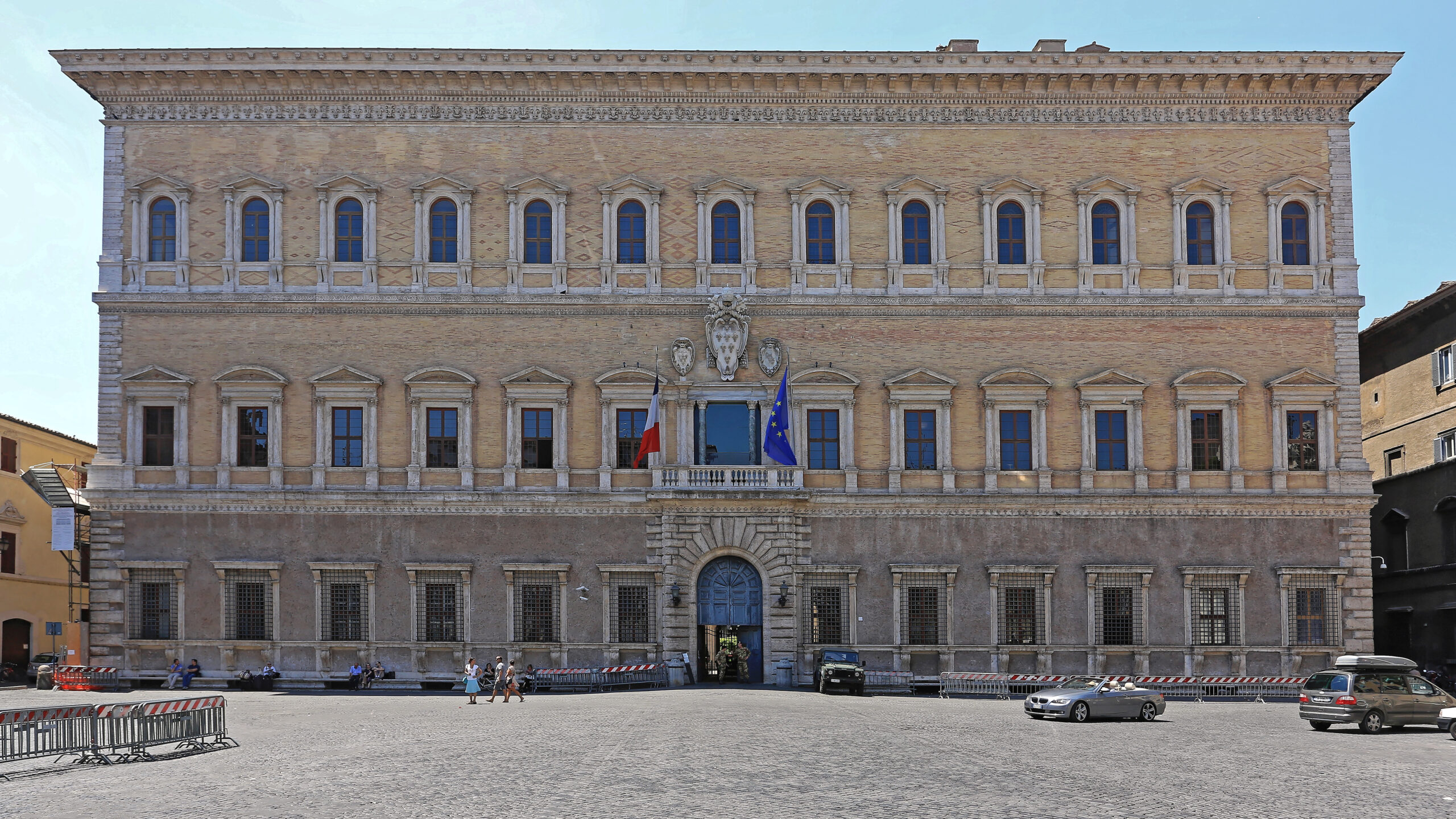 Σήμερα, στο παλάτι στεγάζεται η Γαλλική πρεσβεία, αλλά μπορείτε να έχετε την σπάνια ευκαιρία να δείτε το εσωτερικό με τις εκπληκτικές νωπογραφίες του Annibale Carracci, που θεωρούνται ισάξιες της Capella Sistina. Προκειμένου να σας επιτραπεί η είσοδος πρέπει να έχετε κάνει κράτηση on line για μία από τις οργανωμένες περιηγήσεις που λαμβάνουν χώρα 3 μέρες τη βδομάδα σε 3 γλώσσες. Κάντε κράτηση αρκετά νωρίτερα, καθώς τα γκρουπ περιορίζονται σε 25 άτομα και η ζήτηση είναι μεγάλη λόγω της τεράστιας καλλιτεχνικής αξίας των νωπογραφιών. Ο Carracci ξεπέρασε τον εαυτό του απεικονίζοντας τις μυθολογικές σκηνές της οροφής και χάρισε στη Ρώμη ένα ακόμη μπαρόκ αριστούργημα. Βοηθοί του στο έργο ήταν δύο κορυφαίοι καλλιτέχνες της εποχής, ο Domenichino και ο Lanfranco, υπεύθυνοι από κοινού για την εκπληκτική εκκλησία Sant’ Andrea della Valle, που βρίσκεται σε κοντινή απόσταση.