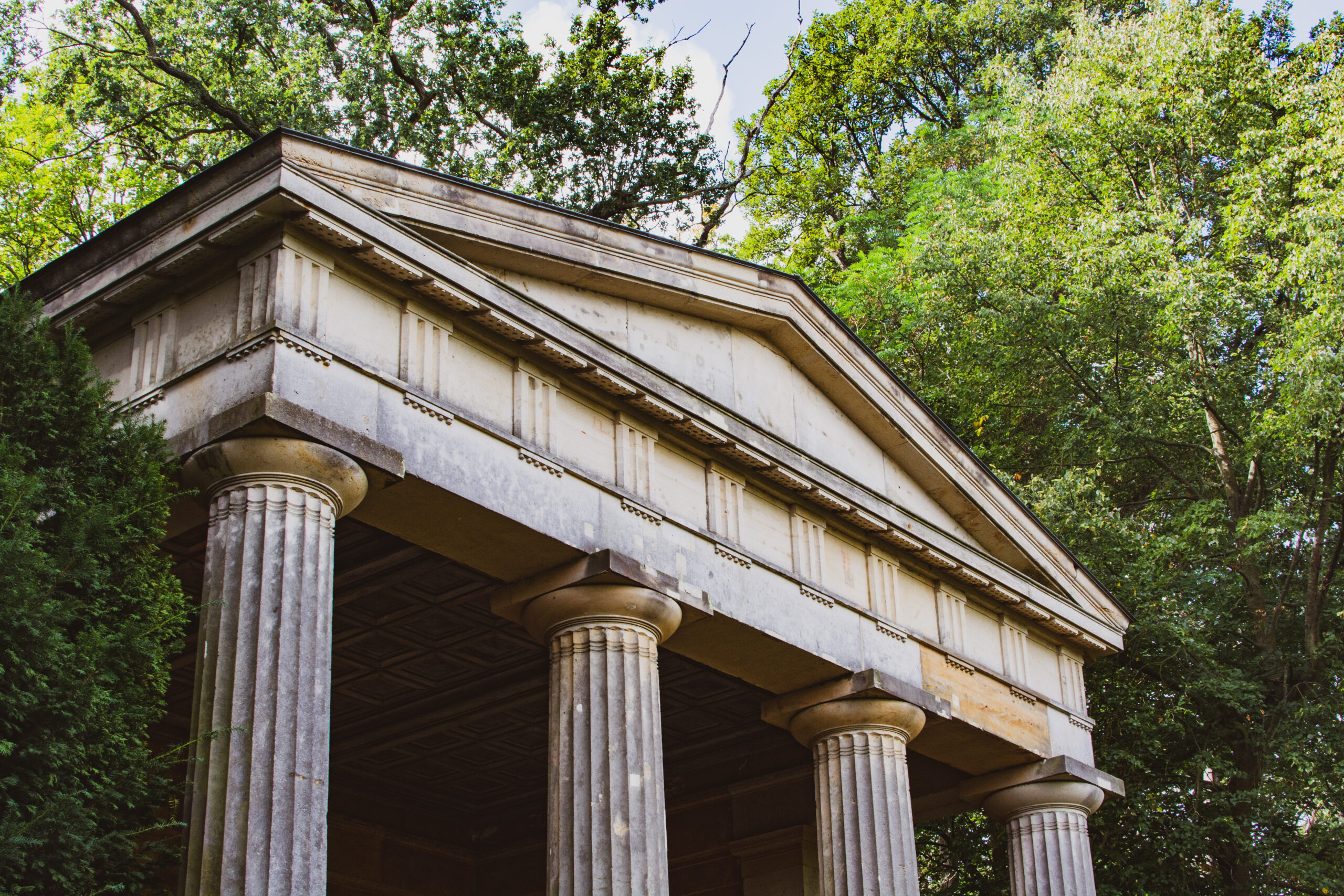 Με την ίδια βασίλισσα έχει συνδεθεί κι ένα ακόμη κτίσμα του νησιού, ο κλασικού ρυθμού ναός Gedächtnistempel für Königin Luise, που αποτελούσε τον προθάλαμο του μαυσωλείου της Λουίζας στο βερολινέζικο Ανάκτορο του Charlottenburg και μεταφέρθηκε στο νησί. Με τέσσερις δωρικές κολώνες και λιτό αέτωμα, κοσμείται από την προτομή της καλλονής, λαοφιλούς βασίλισσας. Απ’ ότι φαίνεται η κλασσική κομψότητα συνυπάρχει και με τις νεογοτθικές υπερβολές στο Pfaueninsel, αυτό τουλάχιστον μαρτυρά το απρόσμενο Kavalierhaus, ένα ακόμη εντυπωσιακό κτίσμα στο νησί. Το «Σπίτι του ιππότη» αποτέλεσε την επέκταση με ένα στάβλο αλόγων και έναν ακόμη για βοοειδή, του αρχικού κτηρίου γαλακτοπαραγωγής, που είχε ανεγείρει ο Φρειδερίκος-Γουλιέλμος Β΄ ώστε να απολαμβάνει με τη σύντροφό του το φρέσκο γάλα των αγελάδων που είχαν φέρει στο νησί.