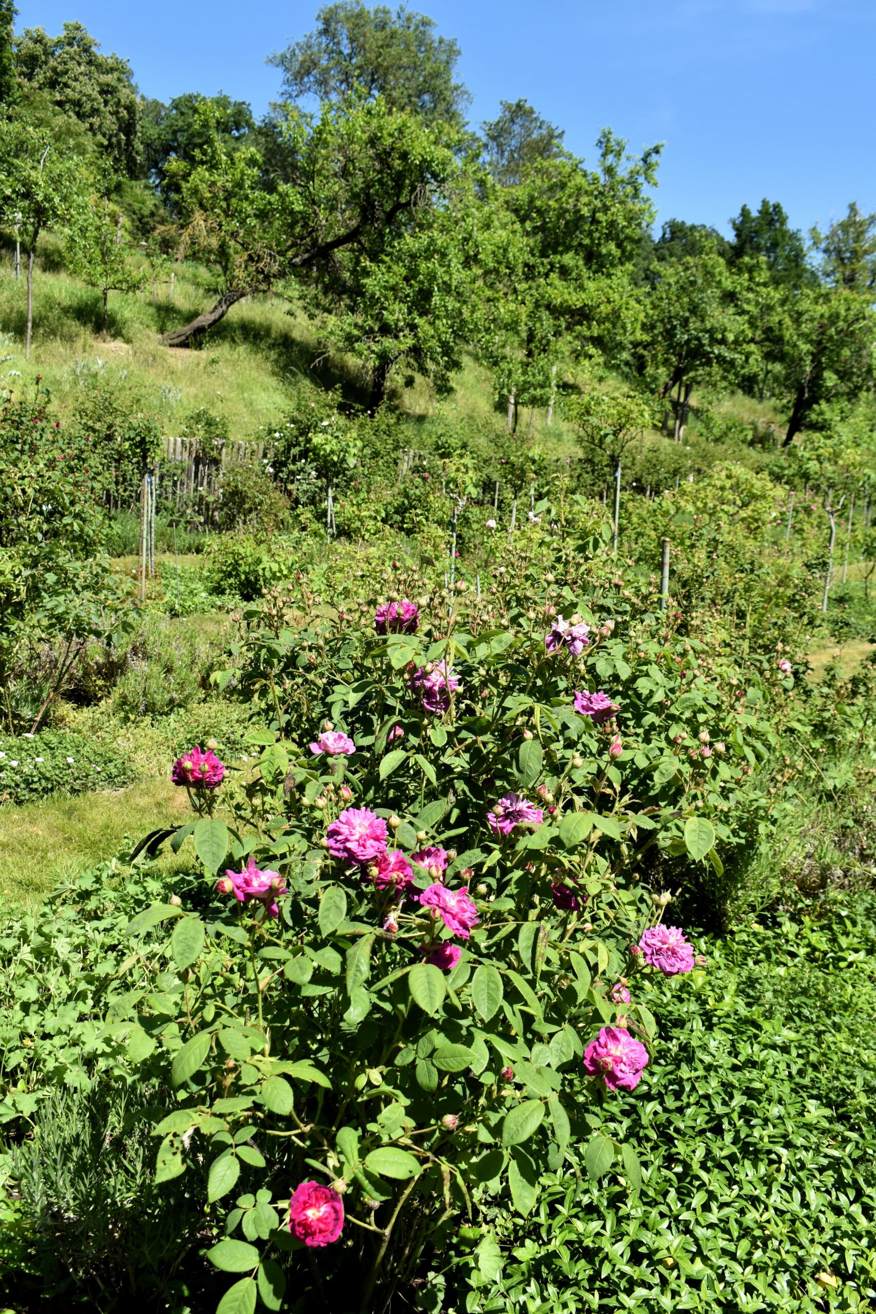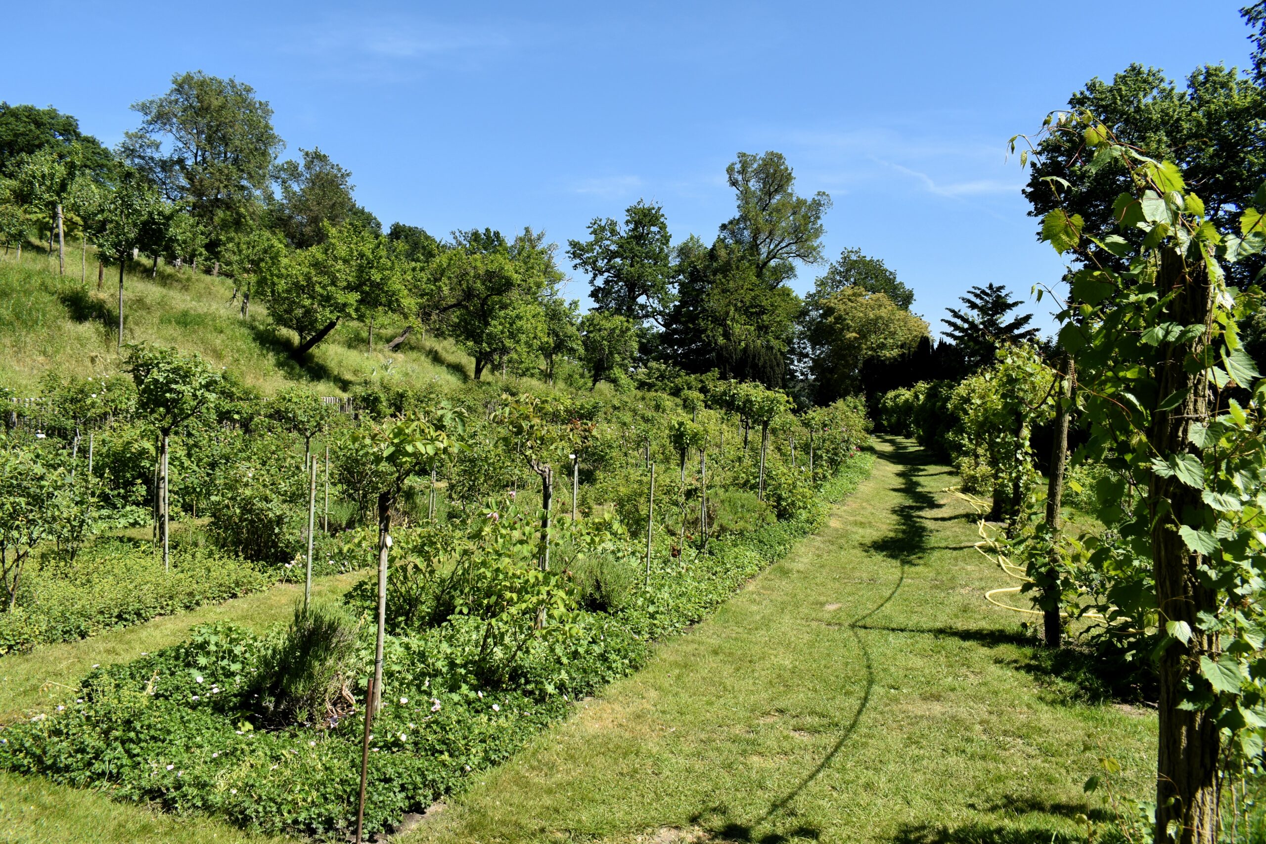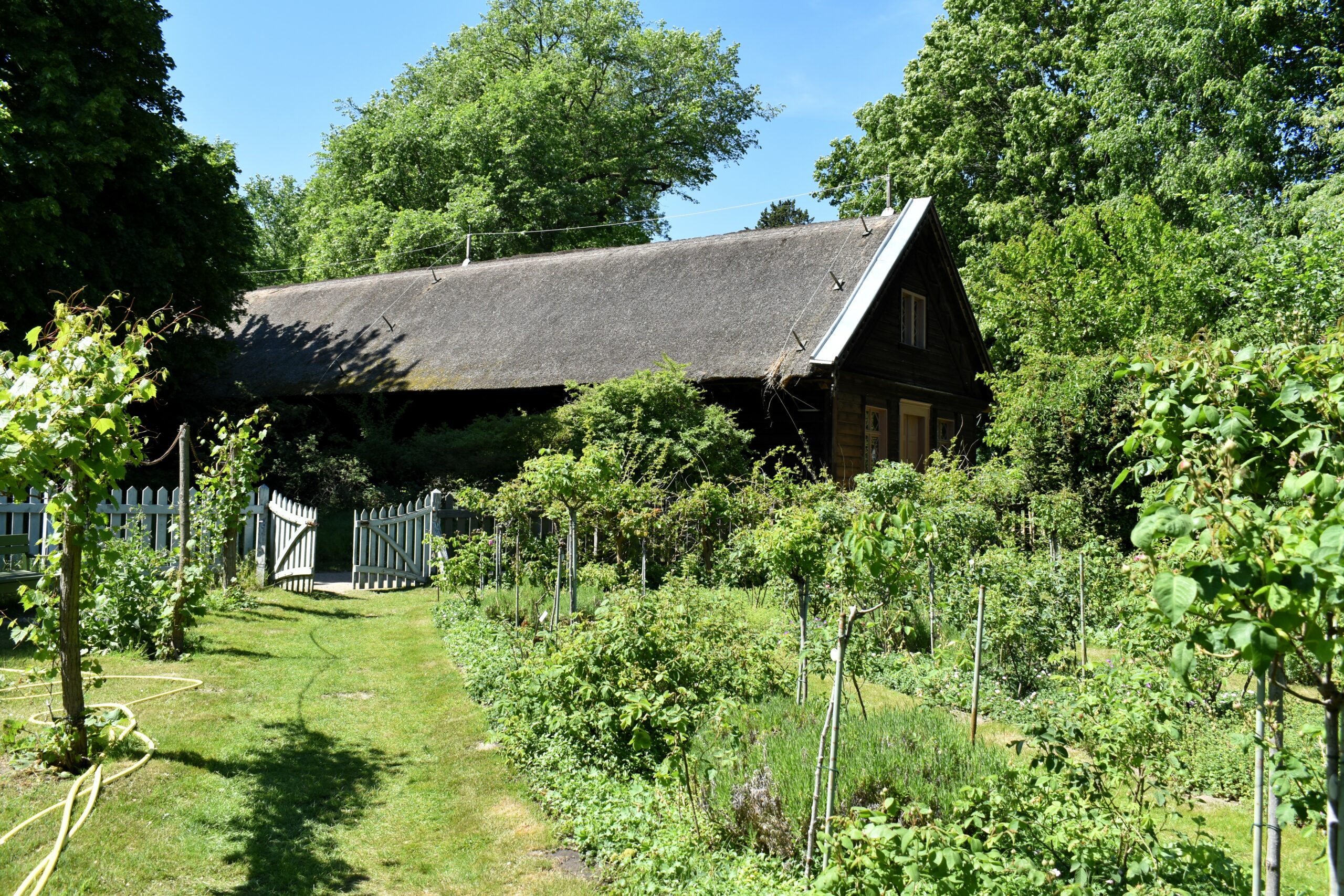 Οι κήποι, τα πάρκα και τα μονοπάτια του παραμένουν όπως τα φαντάστηκε και διαμόρφωσε ο σχεδιαστής κήπων Peter Joseph Lenné, στον οποίο οφείλεται και η δημιουργία του παλαιότερου ροδώνα του Βερολίνου. Αυτός ο δύο αιώνων κήπος θα είναι από τις ωραιότερες εικόνες της επίσκεψής σας στο νησί, με τα πολύχρωμα τριαντάφυλλα να χαρίζουν τα μεθυστικά τους αρώματα κάθε άνοιξη κι ένα παγκάκι να σας προσκαλεί να τα απολαύσετε χαλαρώνοντας. Υπάρχουν ακόμη σχεδόν 400, ίδιας ηλικίας βελανιδιές σκόρπιες στο νησί, σιντριβάνια και γραφικά ξύλινα σπιτάκια που άλλοτε στέγαζαν τους φροντιστές των κήπων. Θα τα εντοπίσετε ακολουθώντας τα μονοπάτια, με μόνη πυξίδα τη διαίσθησή σας –δυστυχώς σήμανση με πινακίδες κατεύθυνσης δεν υπάρχουν στο νησί, μόνο ένας χάρτης στην προβλήτα-, αλλά με συντροφιά την υπέροχη θέα στη λίμνη και βέβαια τους ήχους των πανέμορφων παγωνιών.