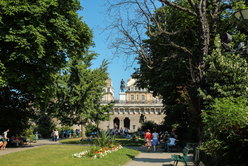 Η Place des Vosges είναι μια πανέμορφη πλατεία στη δεξιά όχθη, στην καρδιά του Marais, από τις πιο ατμοσφαιρικές γωνιές της πόλης. Υπάρχουν συγκεκριμένες ημερομηνίες μέσα στη χρονιά που ανοίγει επίσημα το γρασίδι για τη σεζόν (συνήθως από τον Απρίλιο έως τον Οκτώβριο) και, τις ζεστές μέρες, ο χώρος γεμίζει Παριζιάνους κάθε ηλικίας.