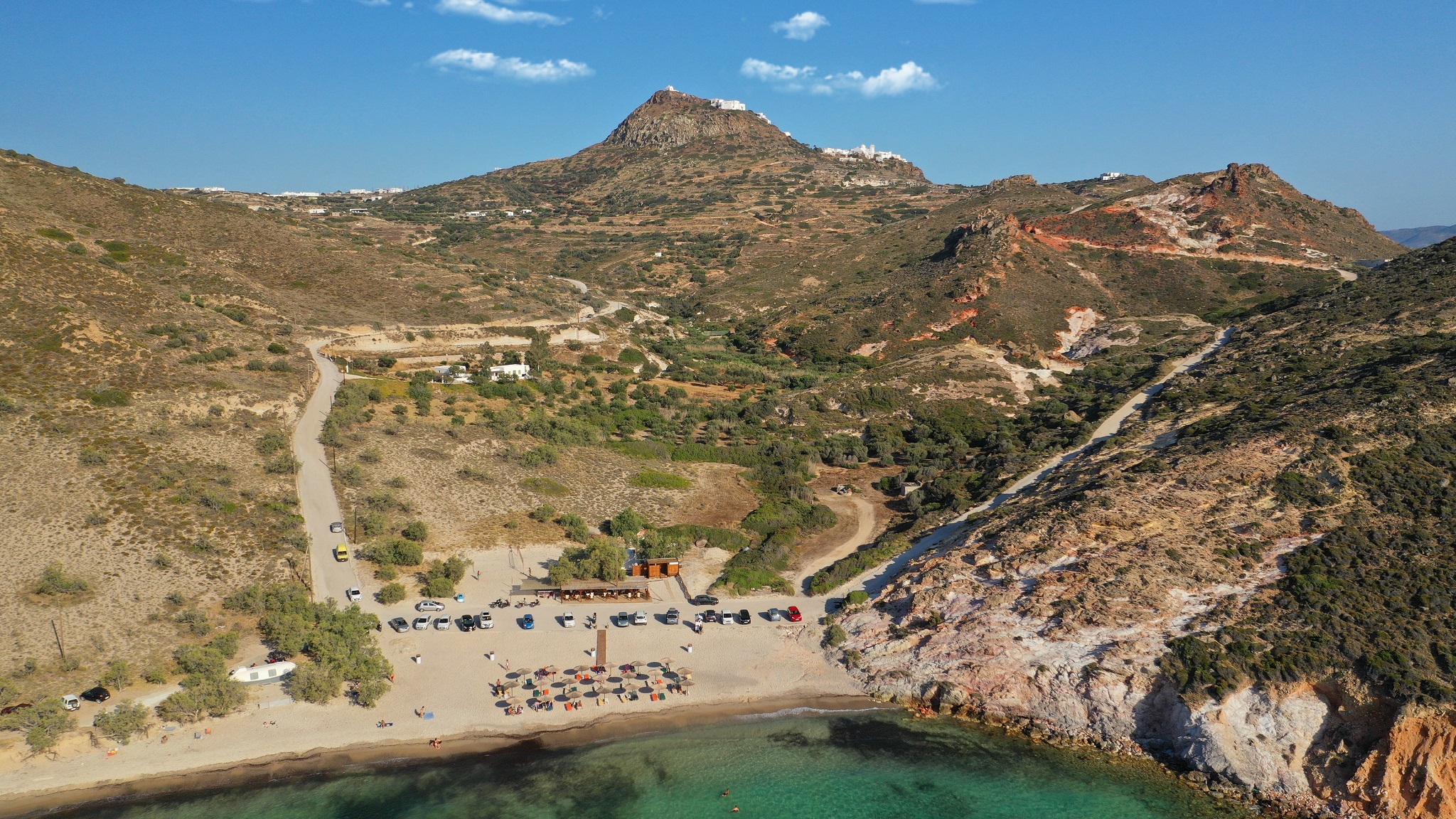 Το βόρειο κομμάτι του νησιού, ωστόσο, έχει κι άλλες ομορφιές, πέρα από το Σαρακήνικο. Εδώ, άλλωστε, βρίσκεται και η πρωτεύουσα της Μήλου, ενώ πολύ κοντά της εντοπίζεται μία ακόμα ονειρεμένη παραλία: η Πλάθιενα με τη χαρακτηριστική, λευκή άμμο, η οποία ξεδιπλώνεται σε έναν γραφικό όρμο με κρυστάλλινα νερά.